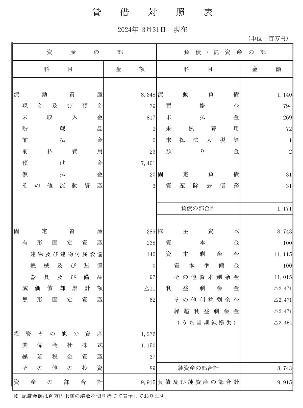 - 決算情報:公開あり
