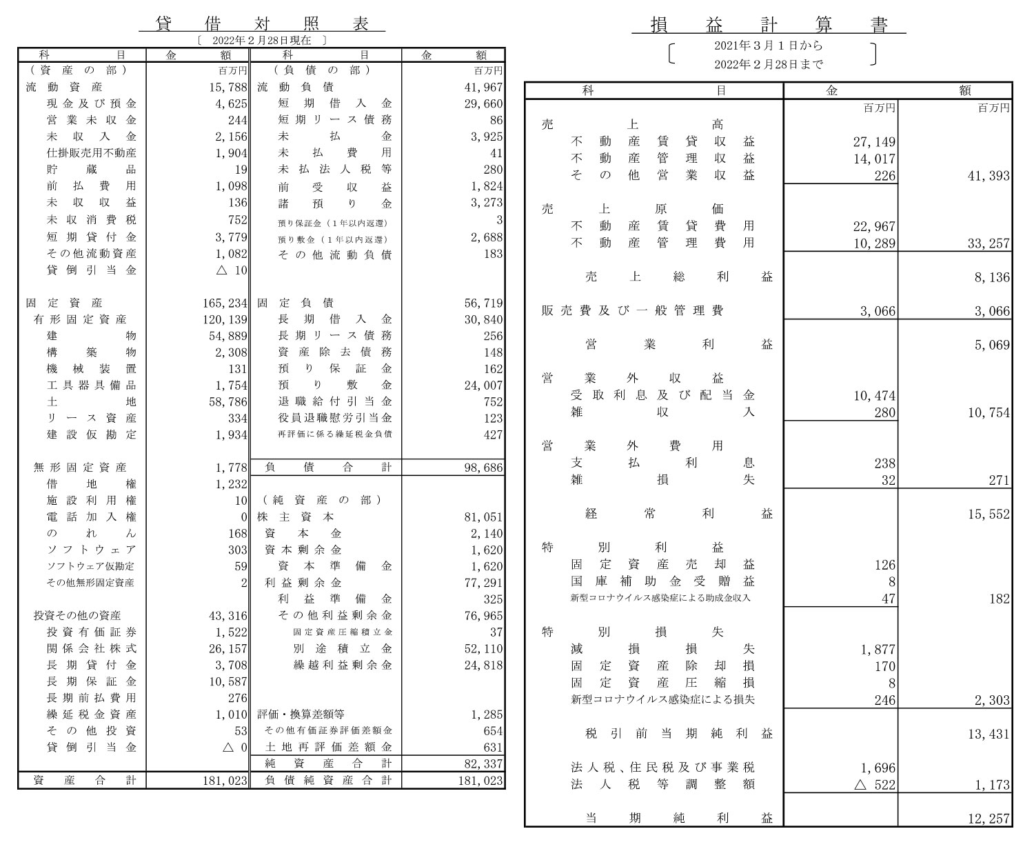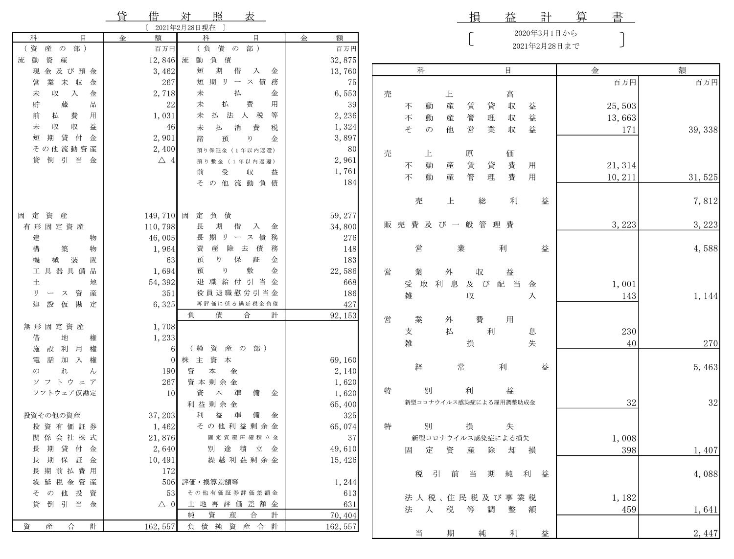 - 決算情報:公開あり