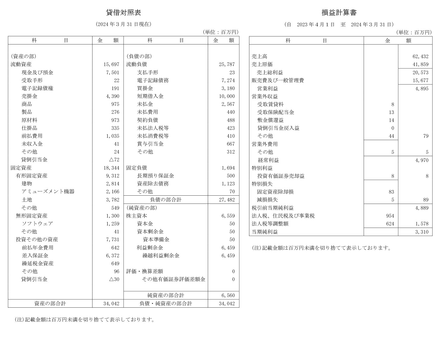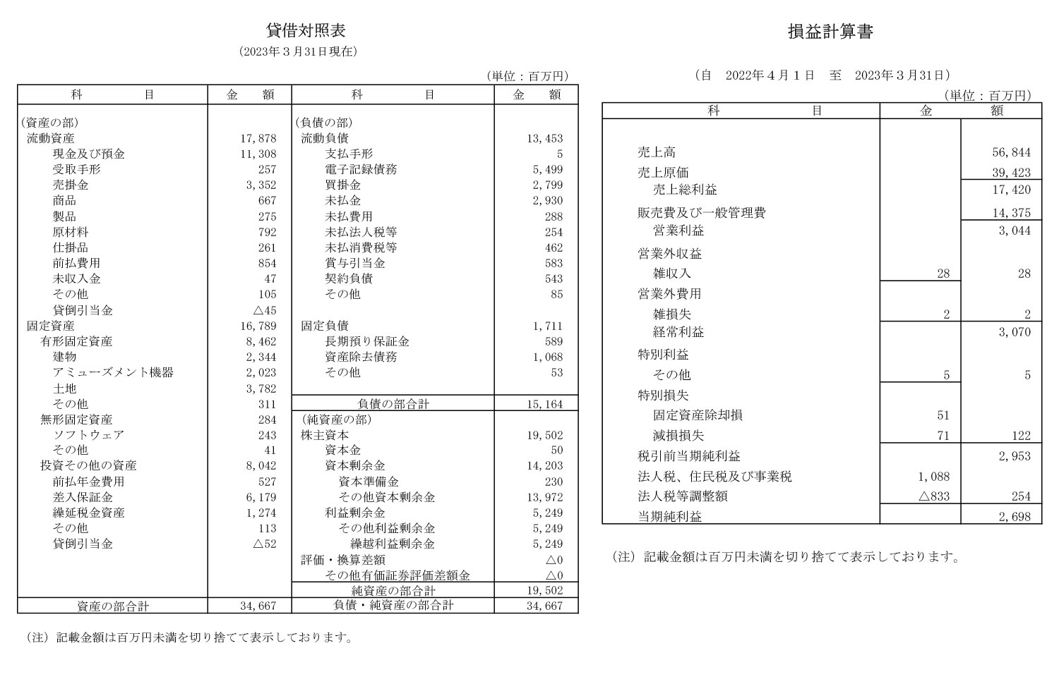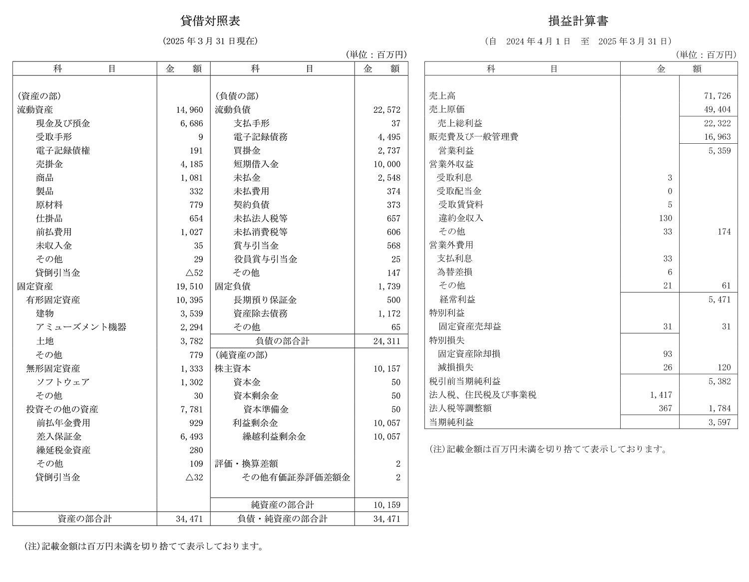 - 決算情報:公開あり