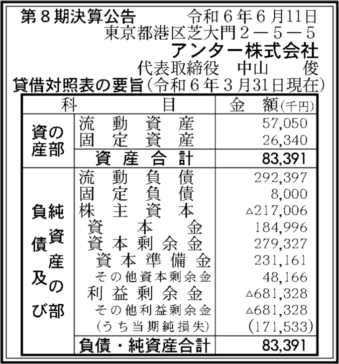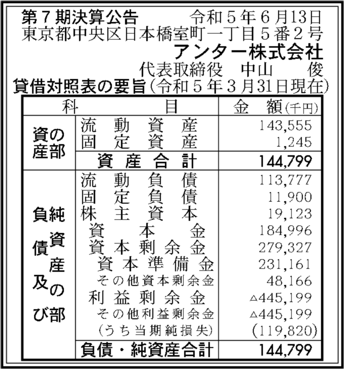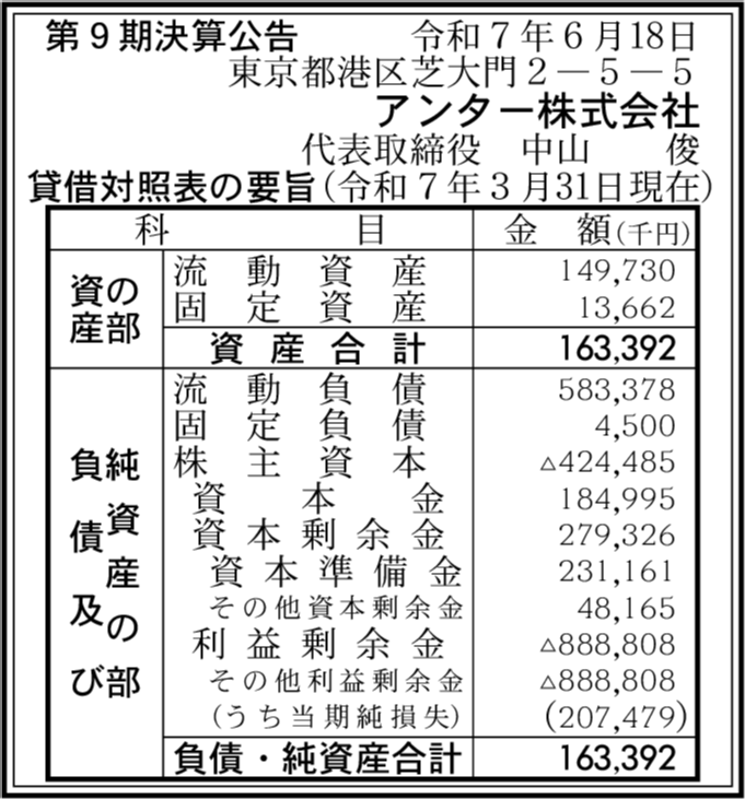| 法人名 | アンター株式会社 |