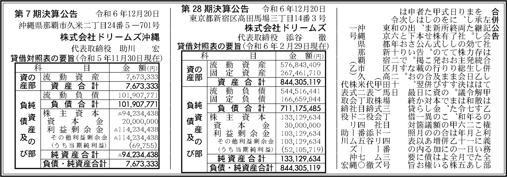株式会社ドリームズの過去の決算一覧