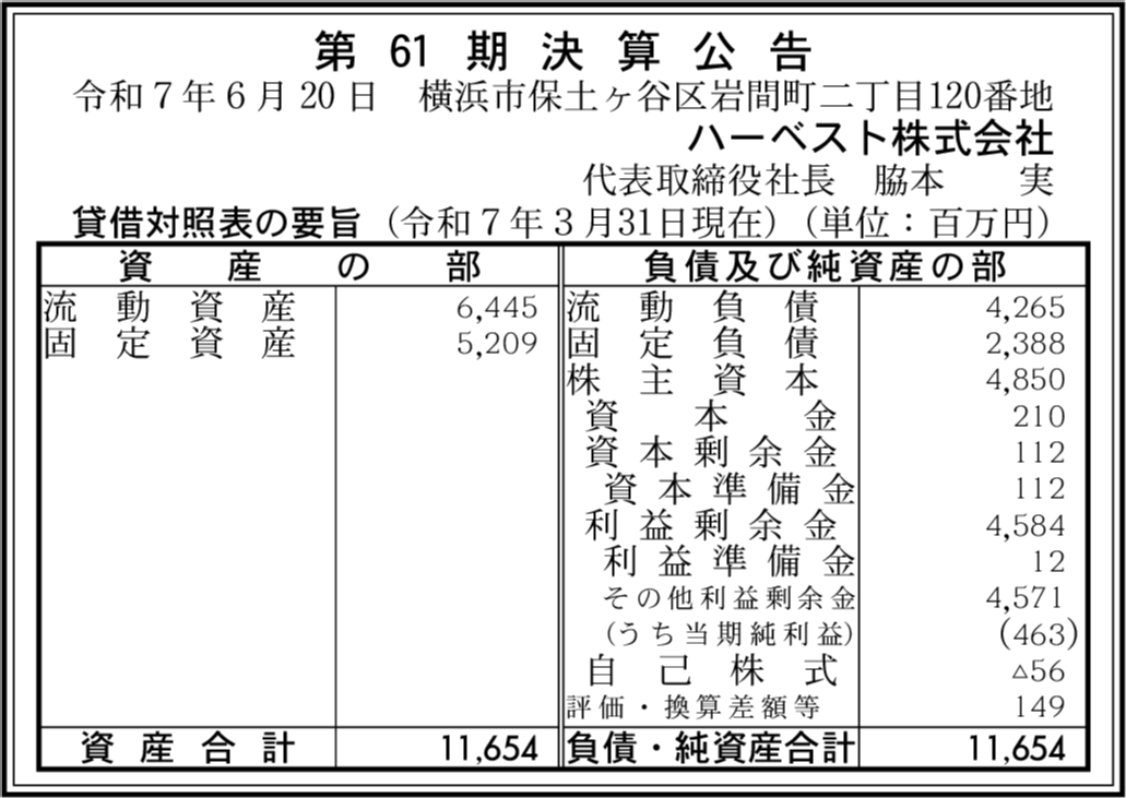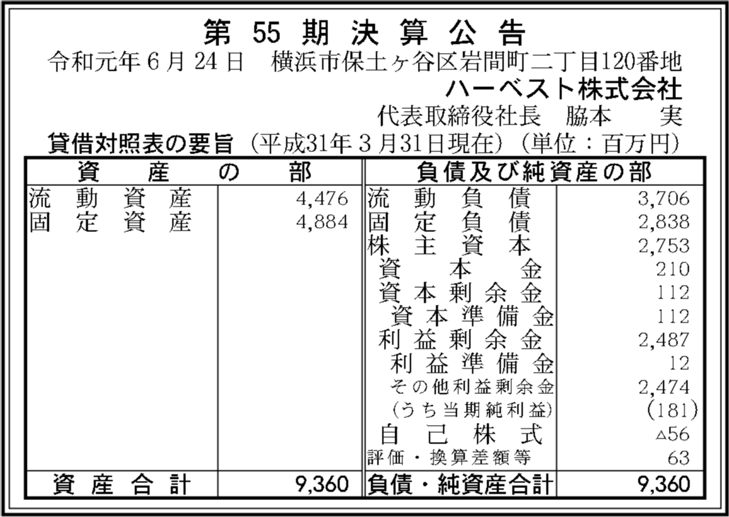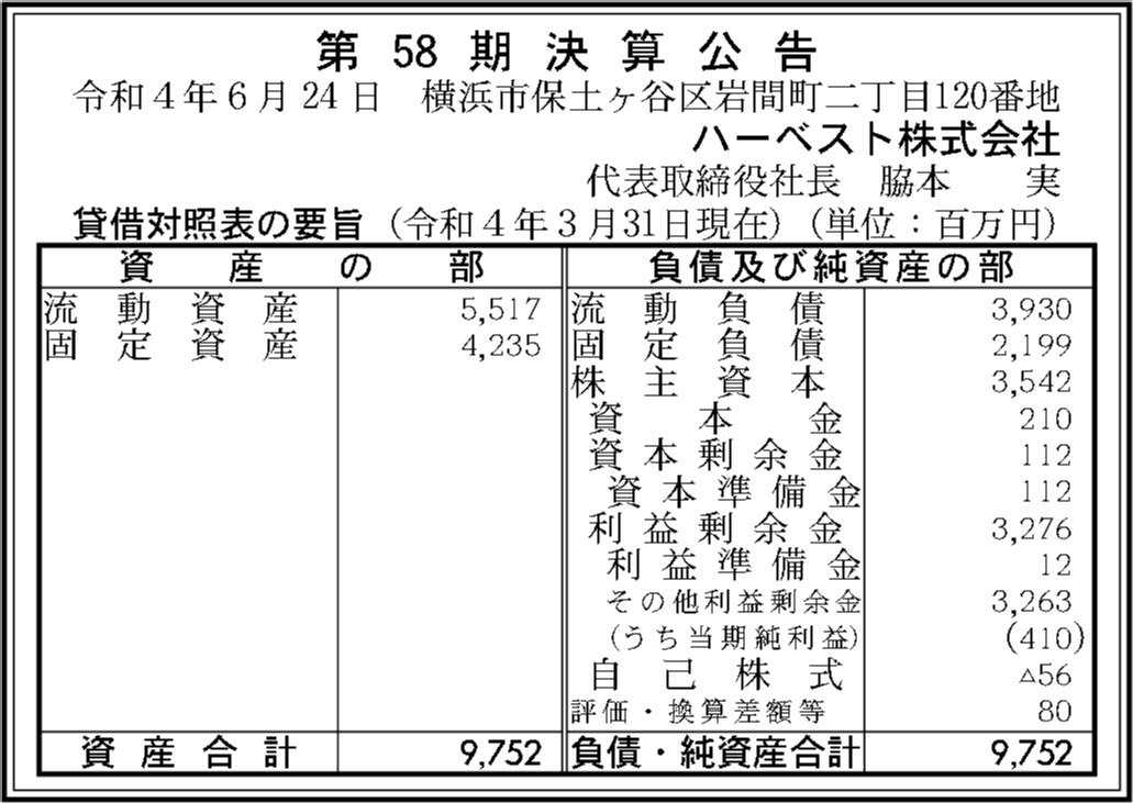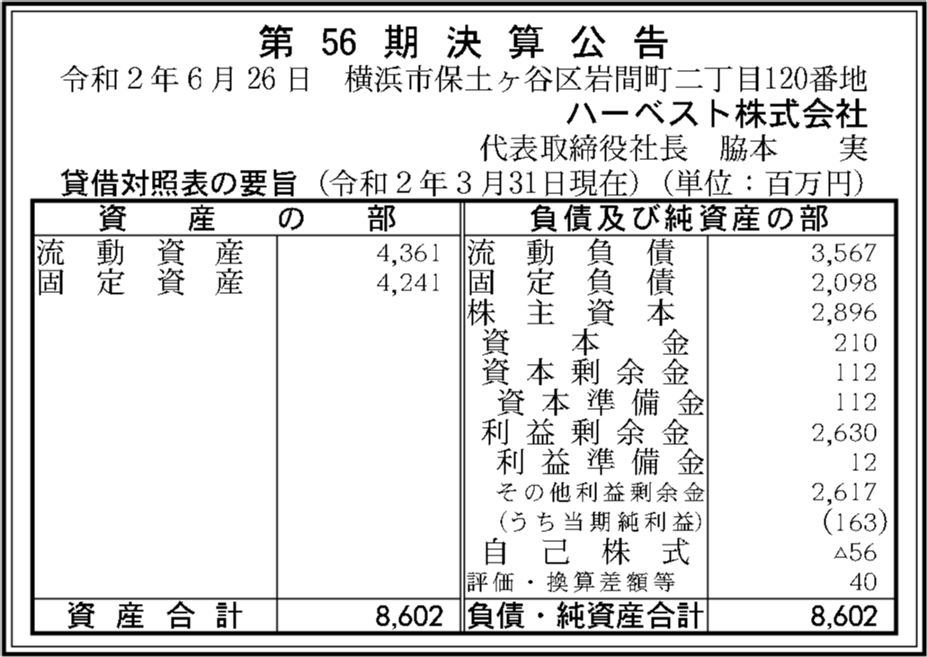 ハーベスト株式会社の法人登記簿(全部事項)を請求