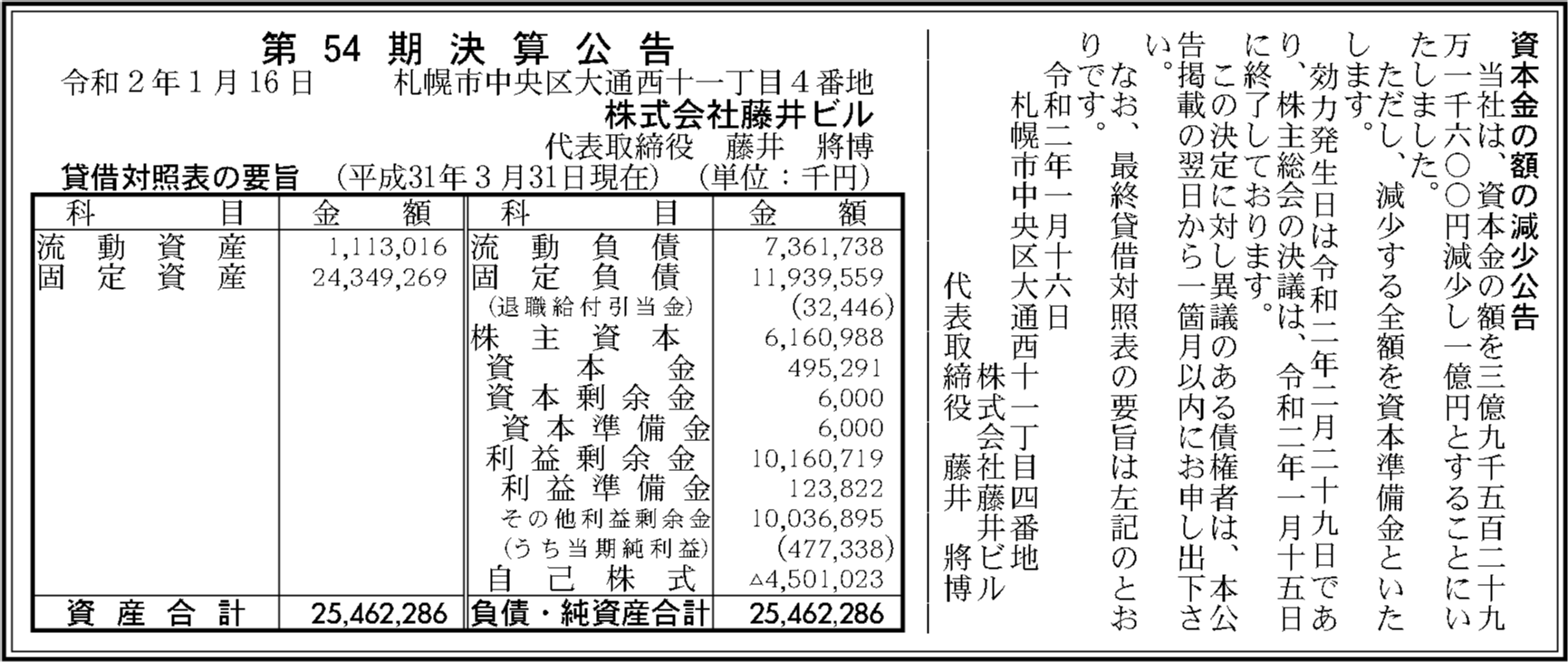 | 2019年03月31日 | 54期 | 4億7,733万8,000円 | 101億6,071万9,000円 | 254億6,228万6,000円 |