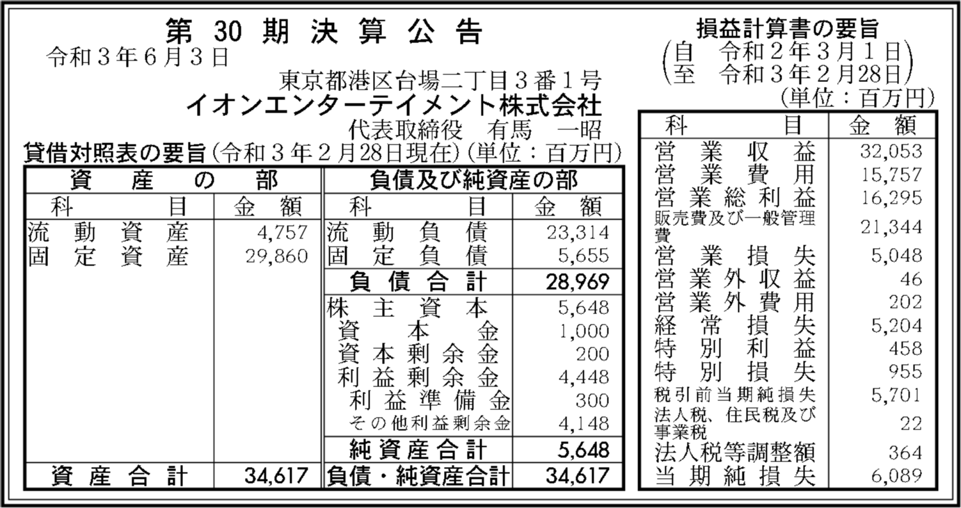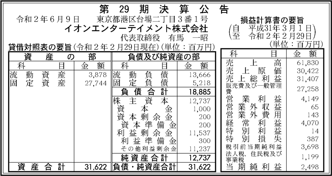 | 事業概要 | マルチプレックス方式による映画、演劇、音楽その他各種イベントの興行、映画館に付属する各種遊戯施設、飲食店、売店などの営業等 |