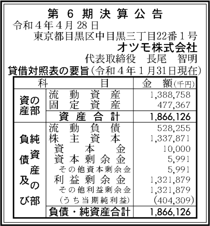 | 2022年01月31日 | 6期 | 4億430万9,000円 | 13億2,187万9,000円 | 18億6,612万6,000円 |