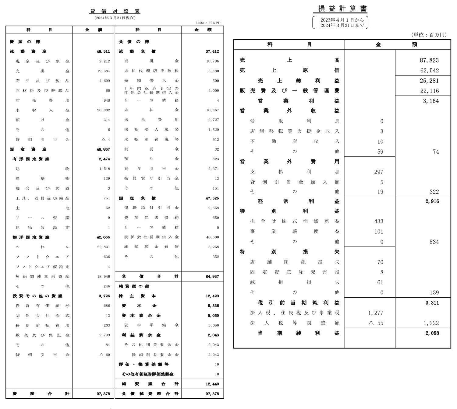 - 決算情報:公開あり