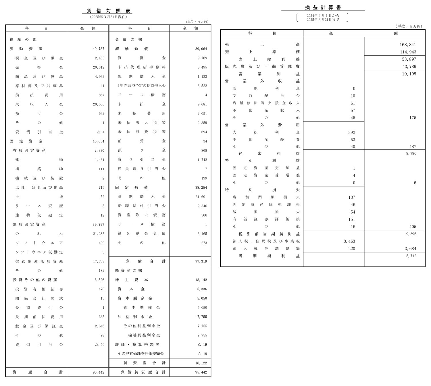 2025年3月期の決算(売上: 1688億4100万円、当期純利益: 57億1200万円)を掲載しています。