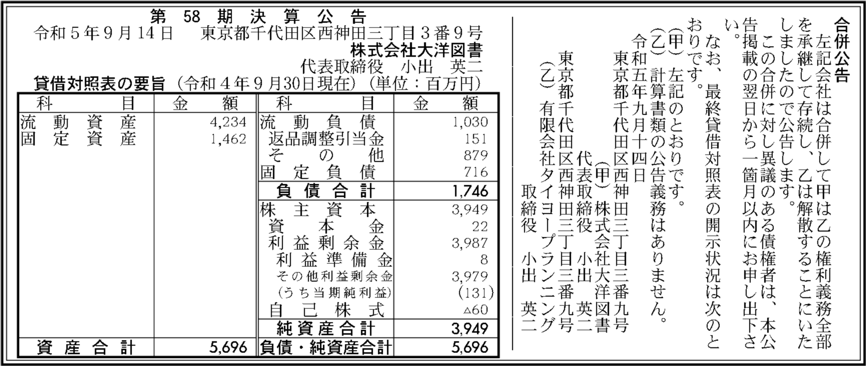 | 法人名 | 株式会社大洋図書 |