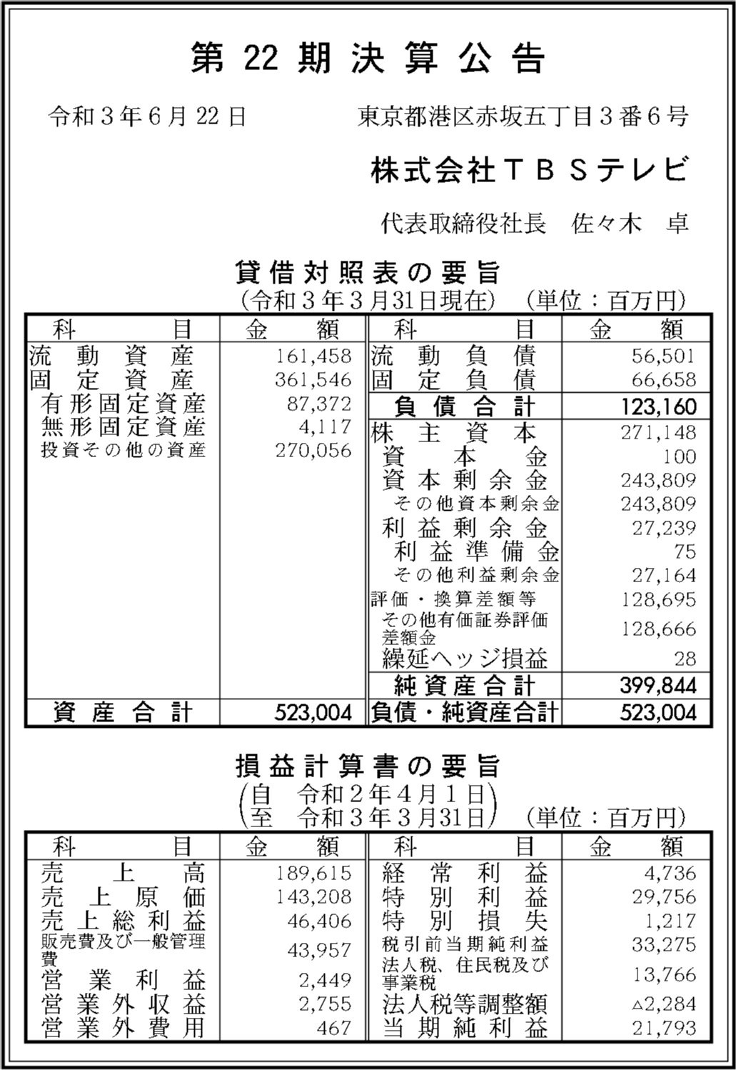 | 2021年03月31日 | 22期 | 1,896億1,500万円 | 217億9,300万円 | 272億3,900万円 | 5,230億400万円 |
