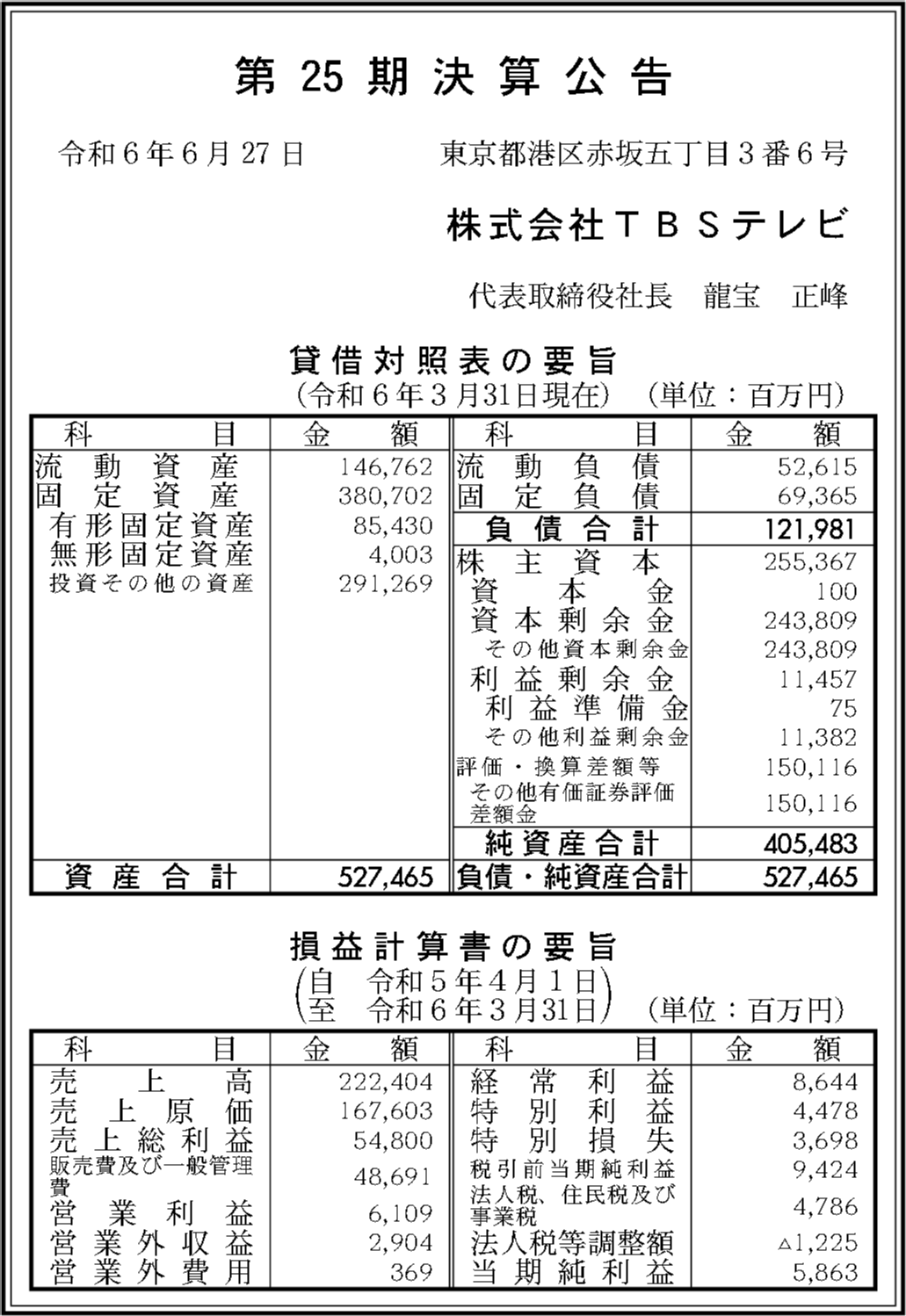 | 2024年03月31日 | 25期 | 2,224億400万円 | 58億6,300万円 | 114億5,700万円 | 5,274億6,500万円 |