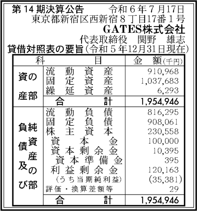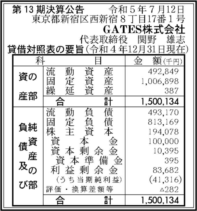 | 法人名 | GATES株式会社 |
