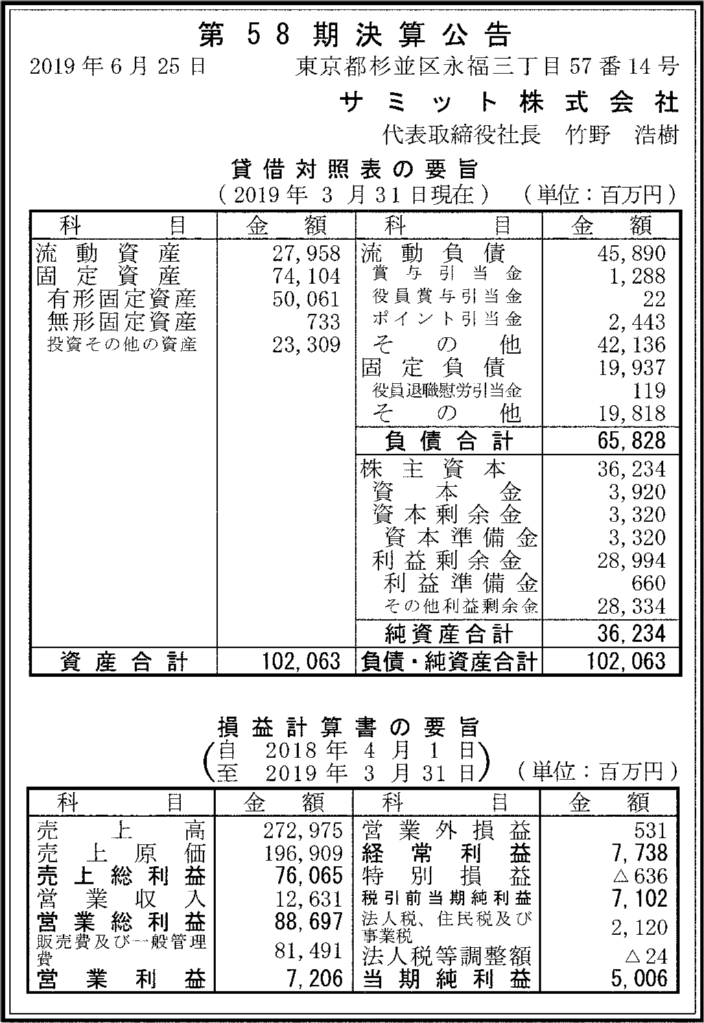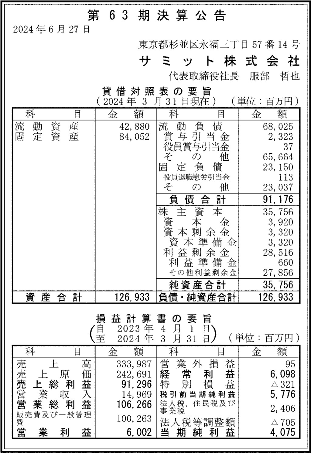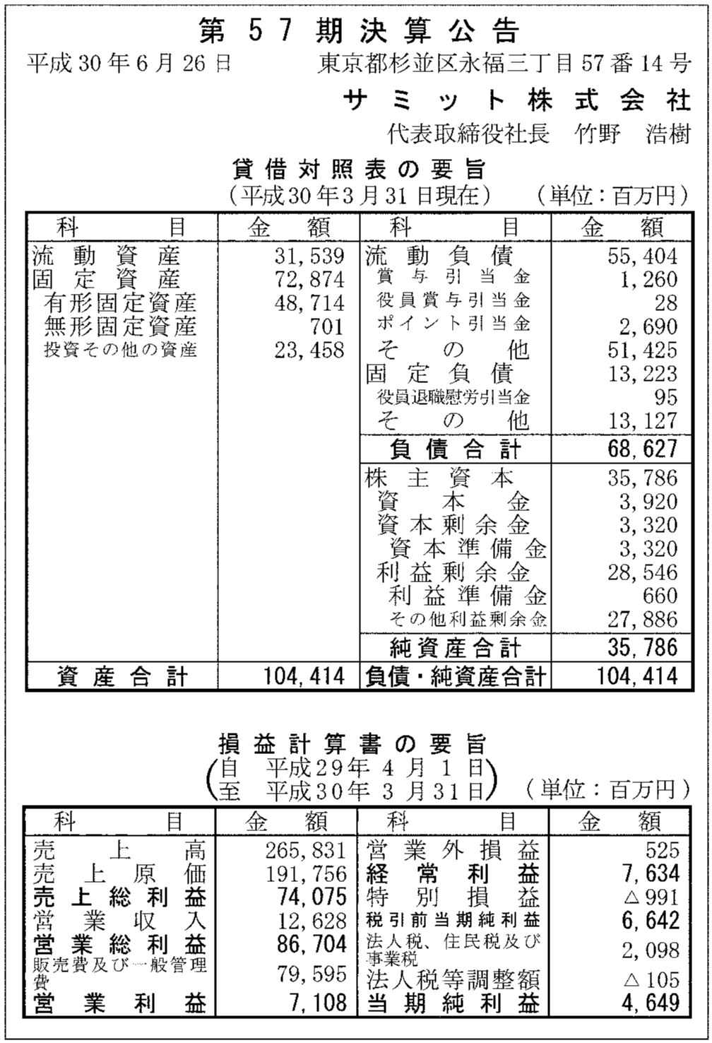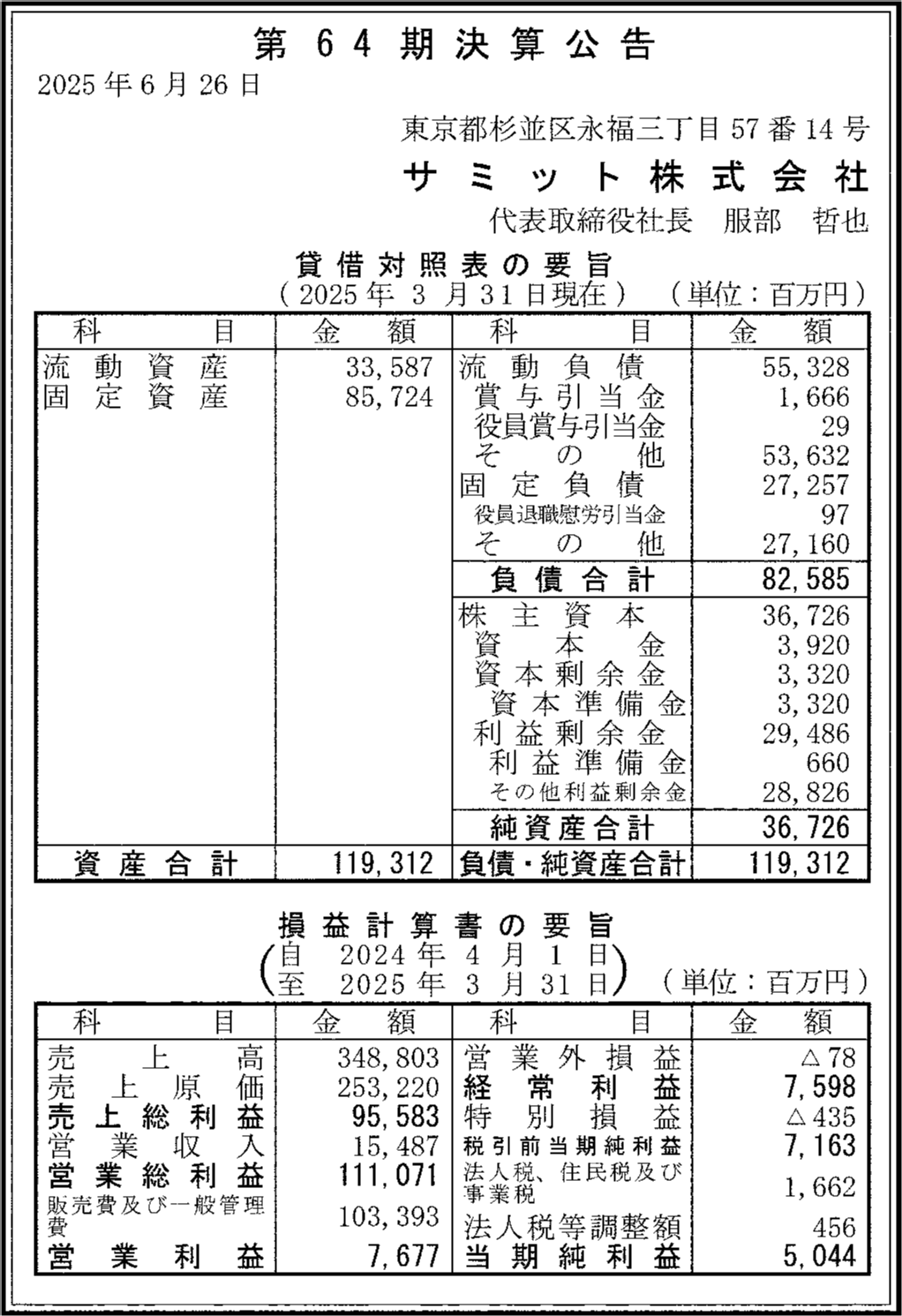 サミット株式会社の過去の決算一覧