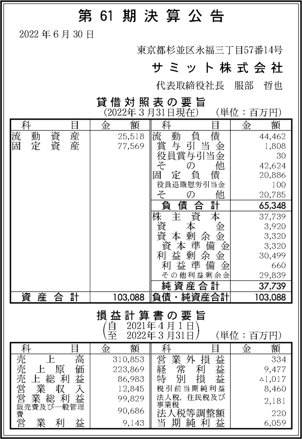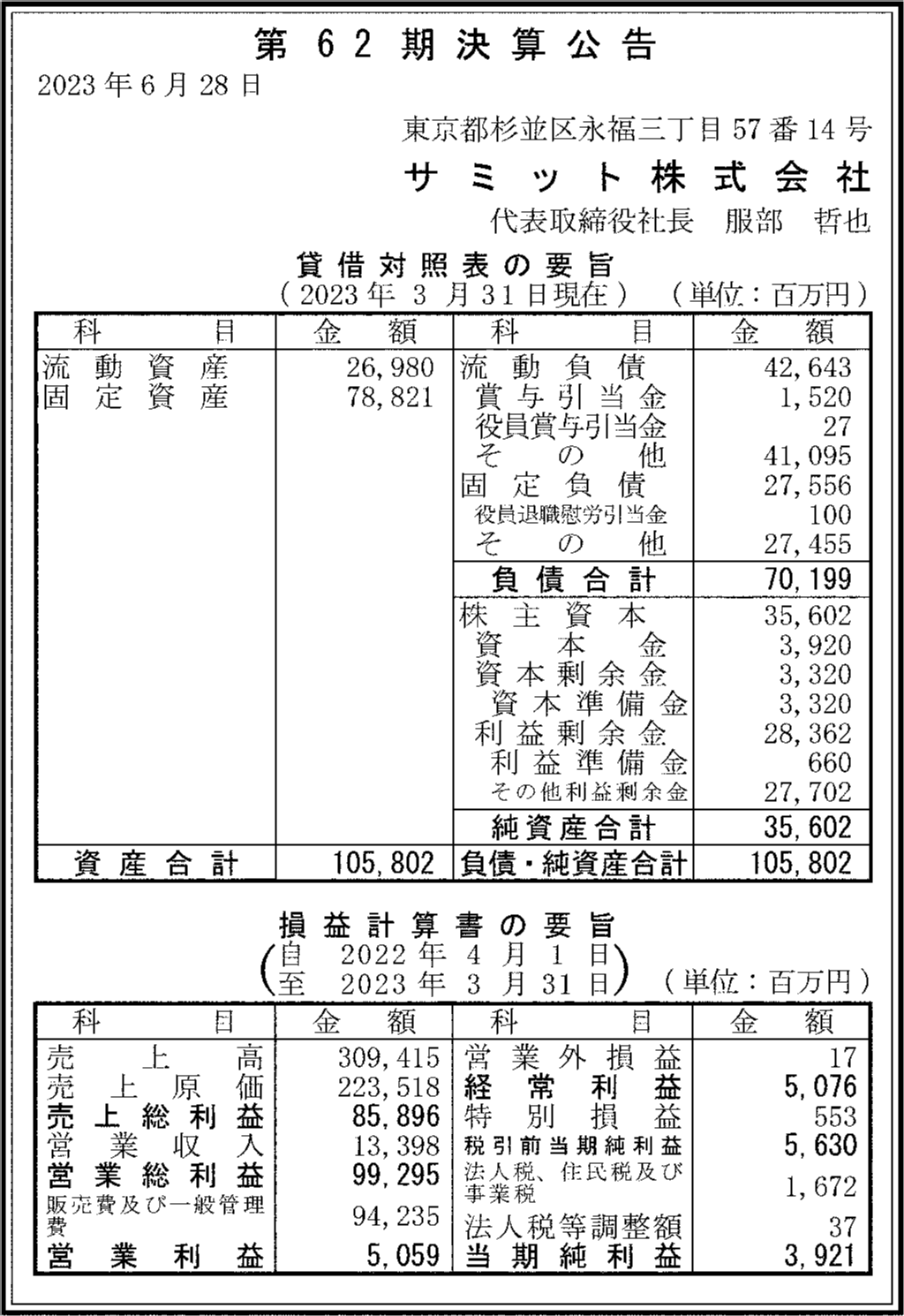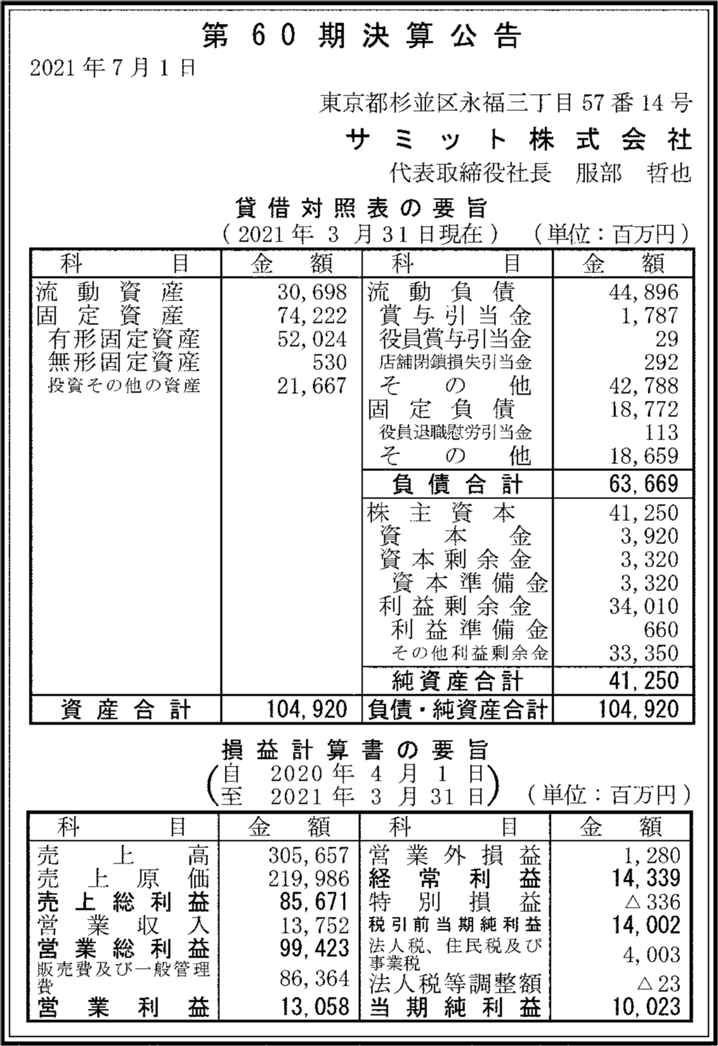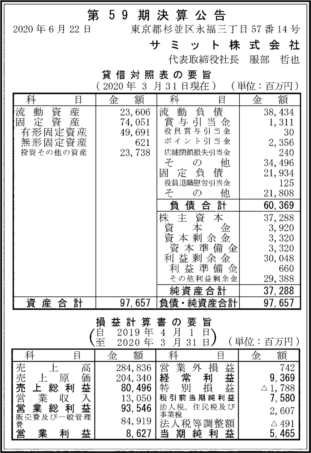 | 法人名 | サミット株式会社 |
