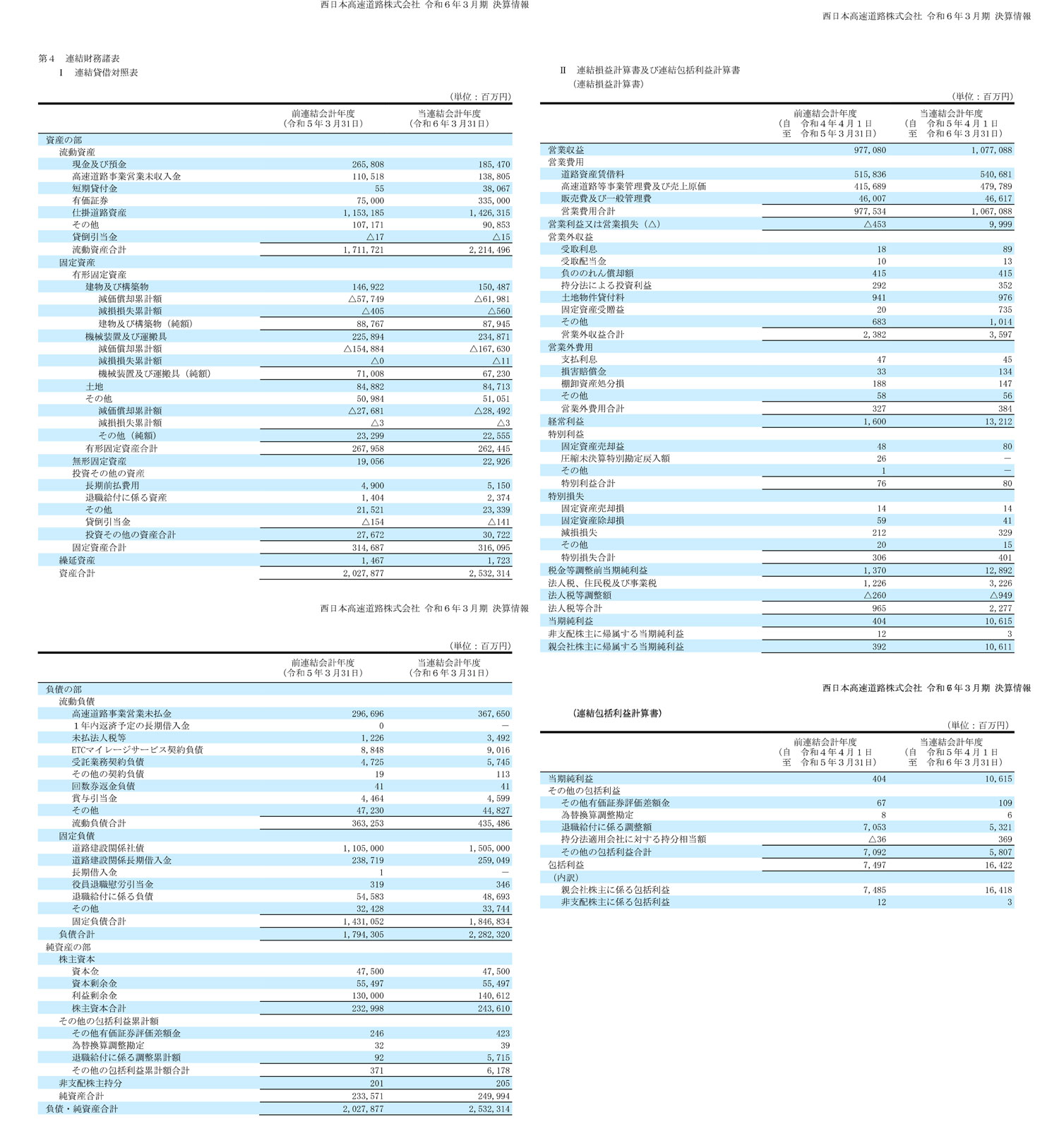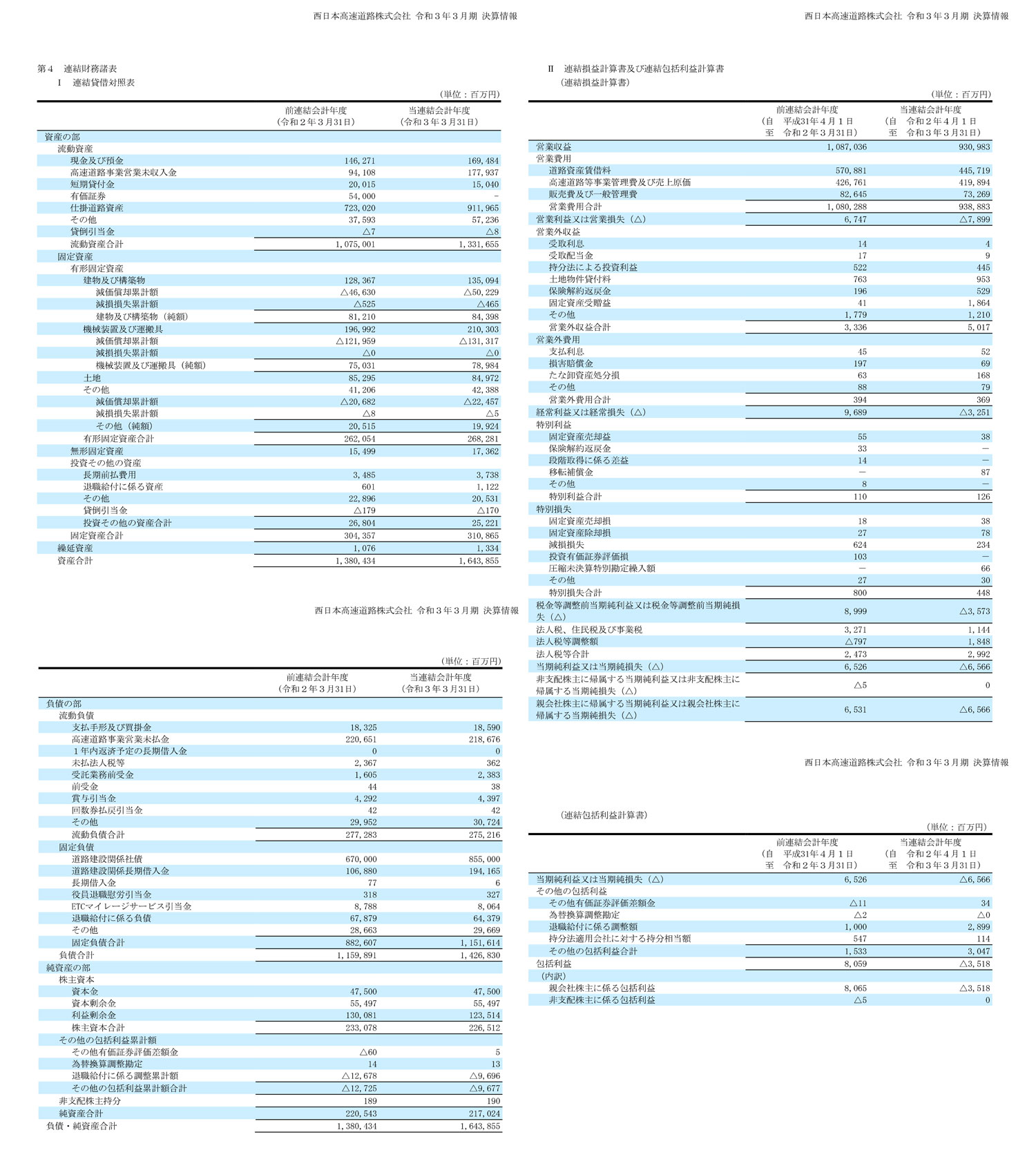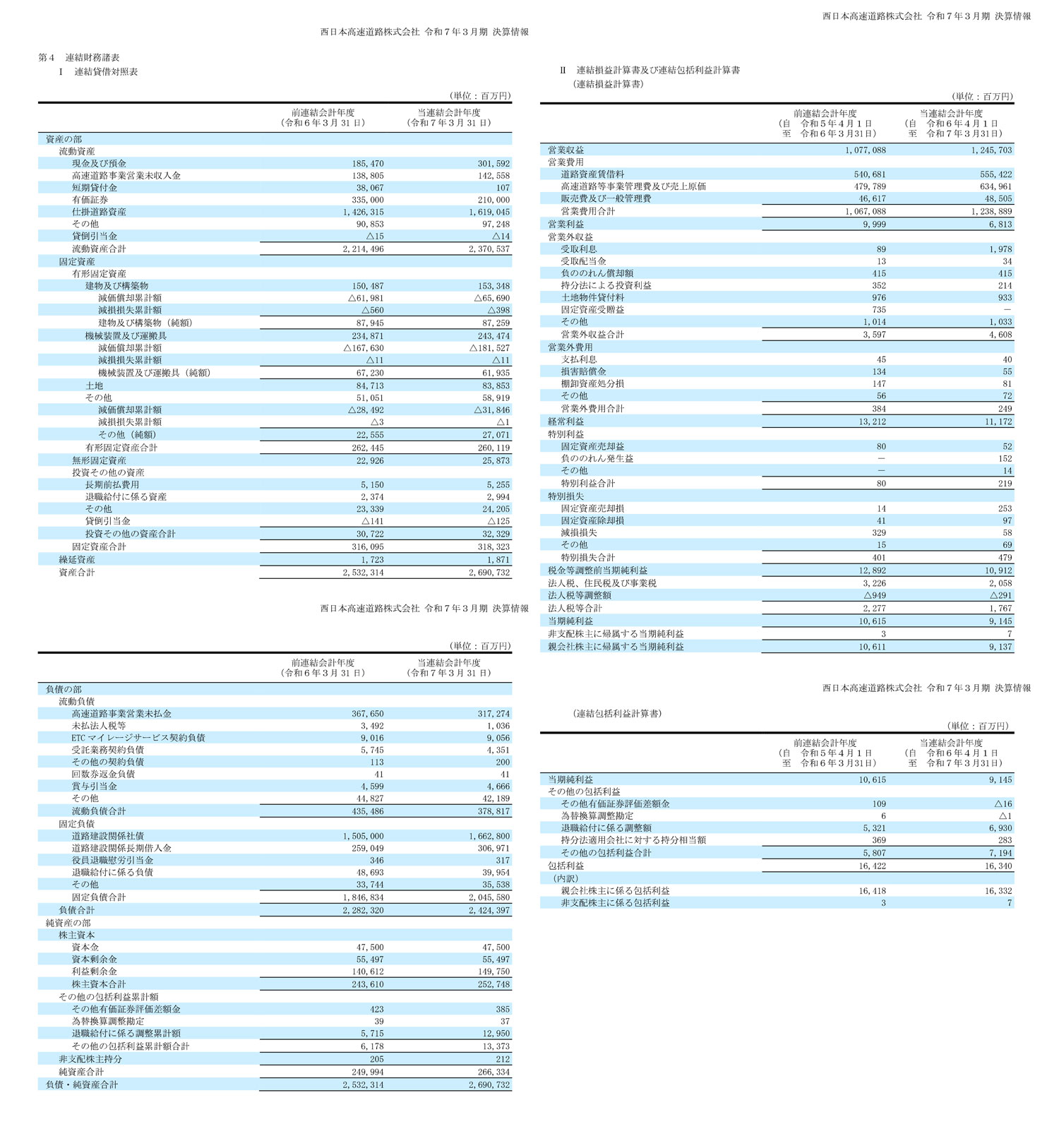 西日本高速道路株式会社の過去の決算一覧