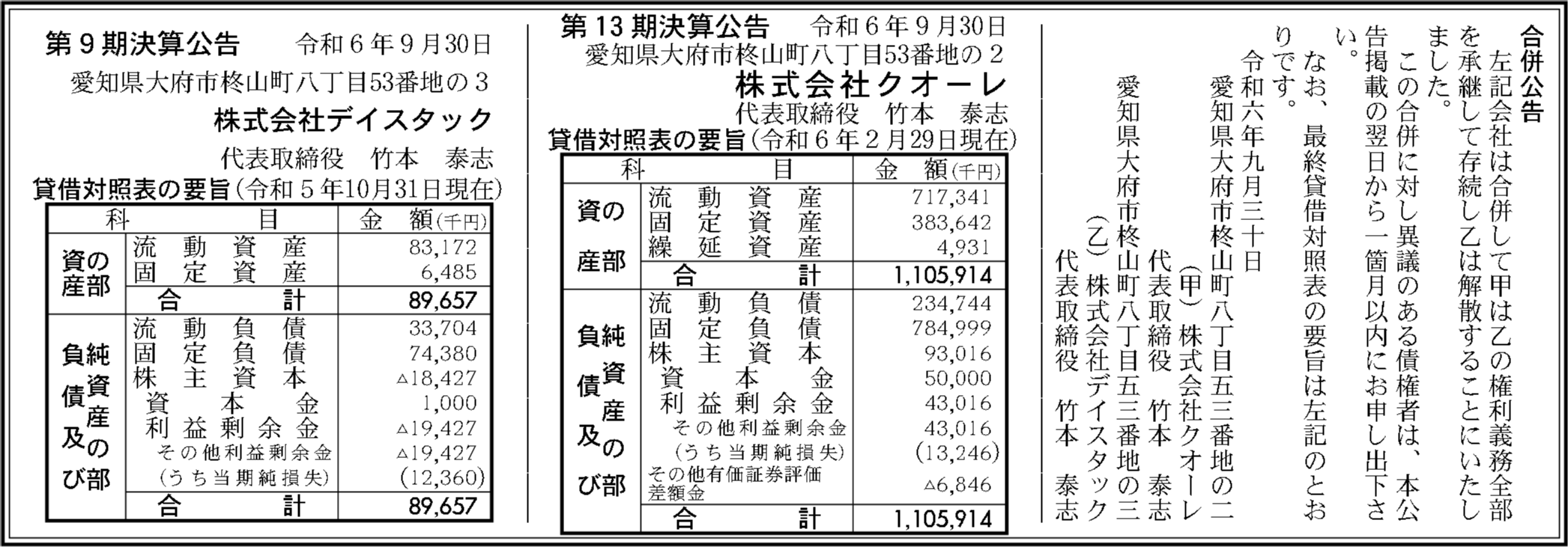 株式会社クオーレ(クオーレ)は、竹本泰志が社長/代表を務める愛知県大府市柊山町8丁目53番地の2に所在する法人です(法人番号: 3180001100480)。最終登記更新は2024/11/01で、吸収合併を実施しました。