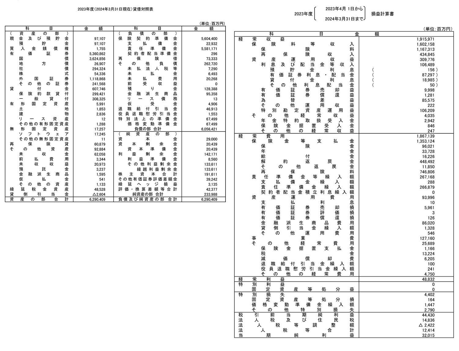 プルデンシャル生命保険株式会社の過去の決算一覧