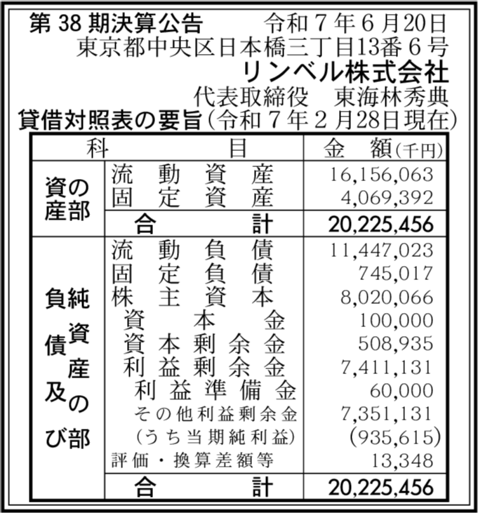 | 2025年02月28日 | 38期 | 9億3,561万5,000円 | 74億1,113万1,000円 | 202億2,545万6,000円 |