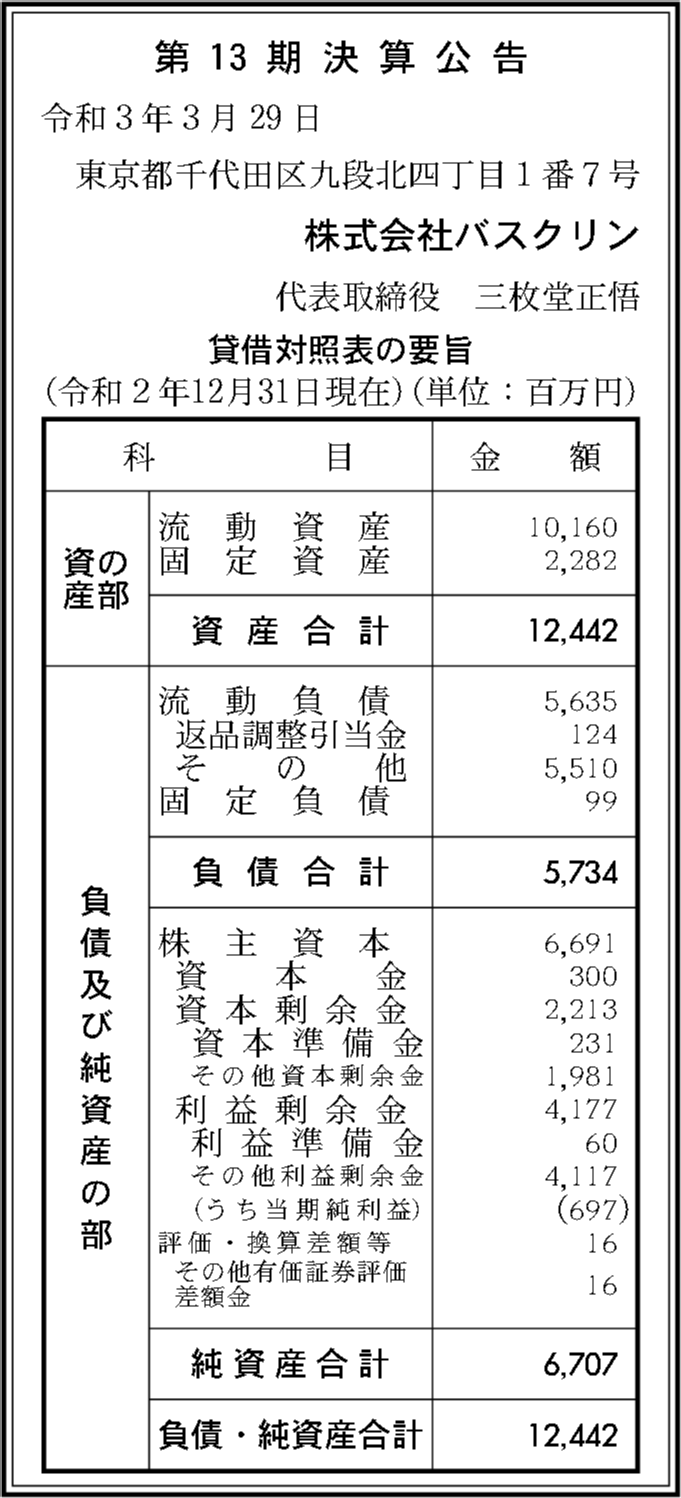 | 2020年12月31日 | 13期 | – | 6億9,700万円 | 41億7,700万円 | 124億4,200万円 |