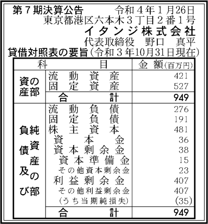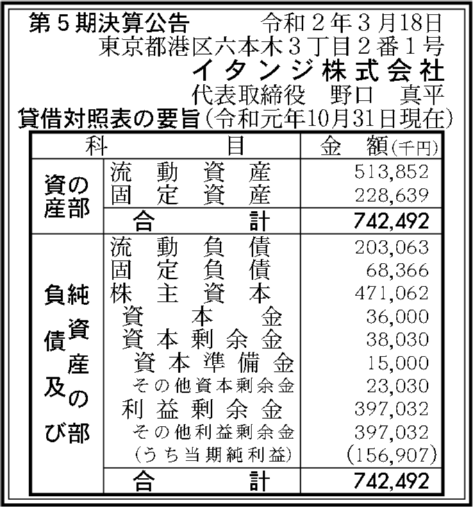 | 法人名 | イタンジ株式会社 |