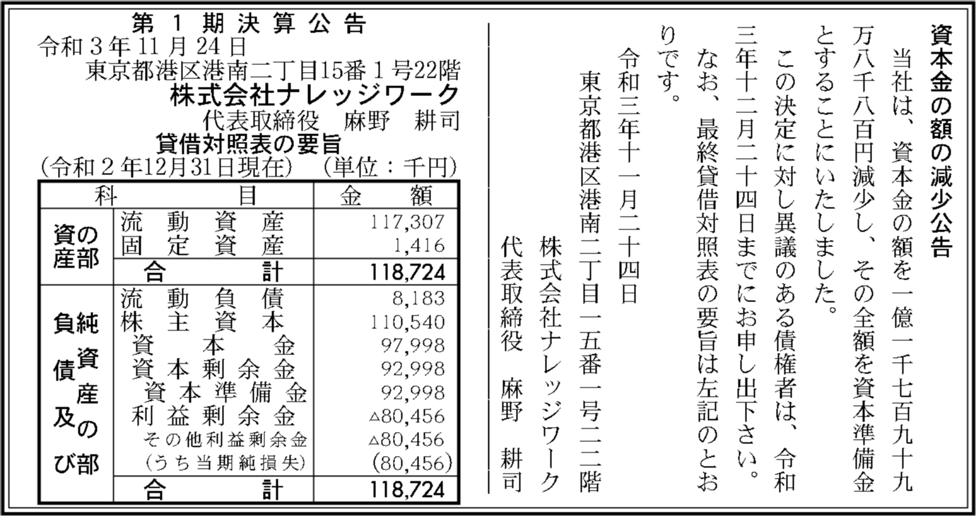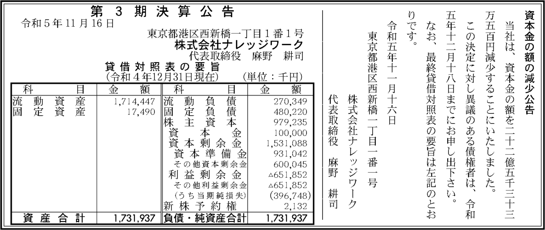 株式会社ナレッジワークの法人登記簿(全部事項)を請求