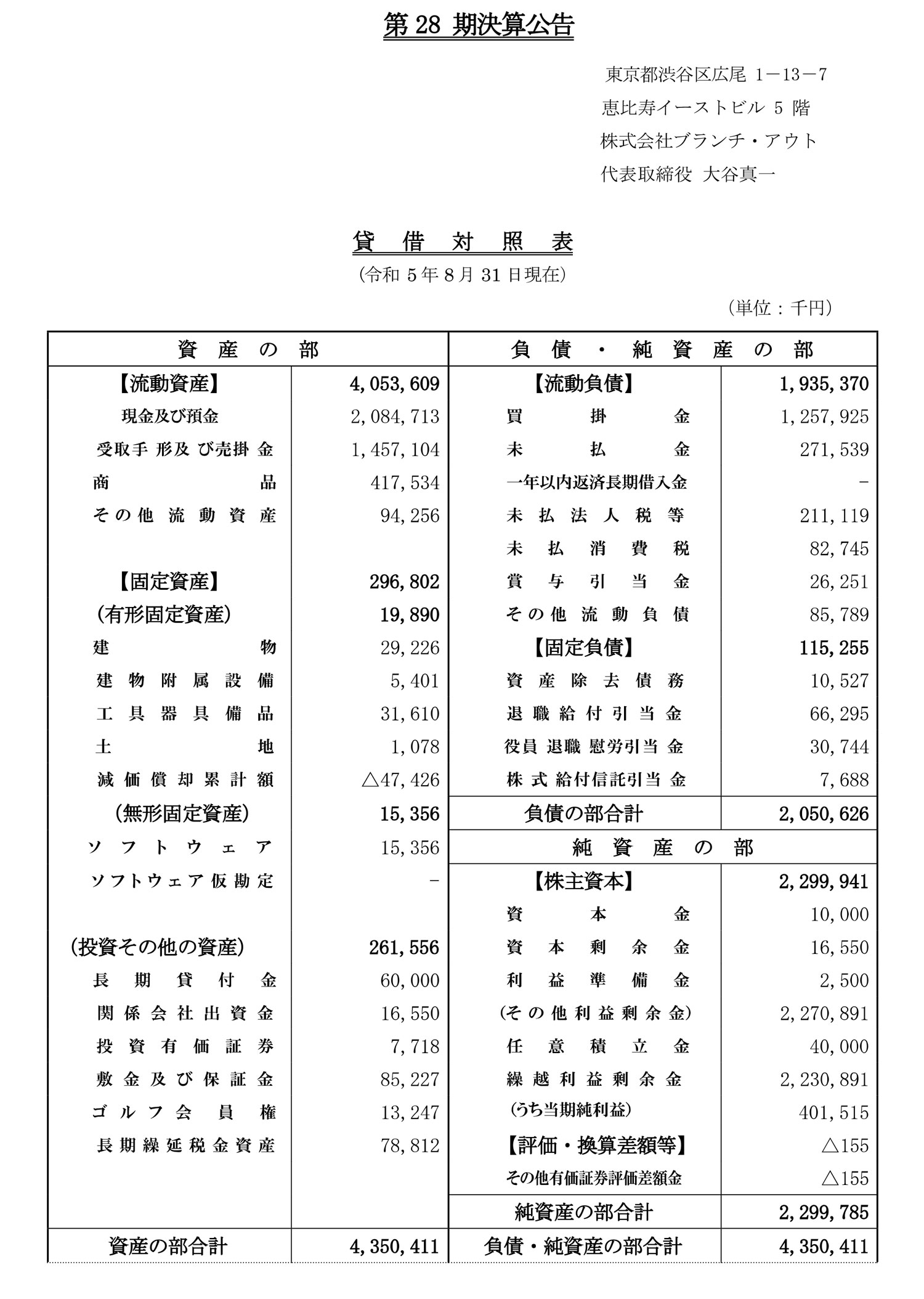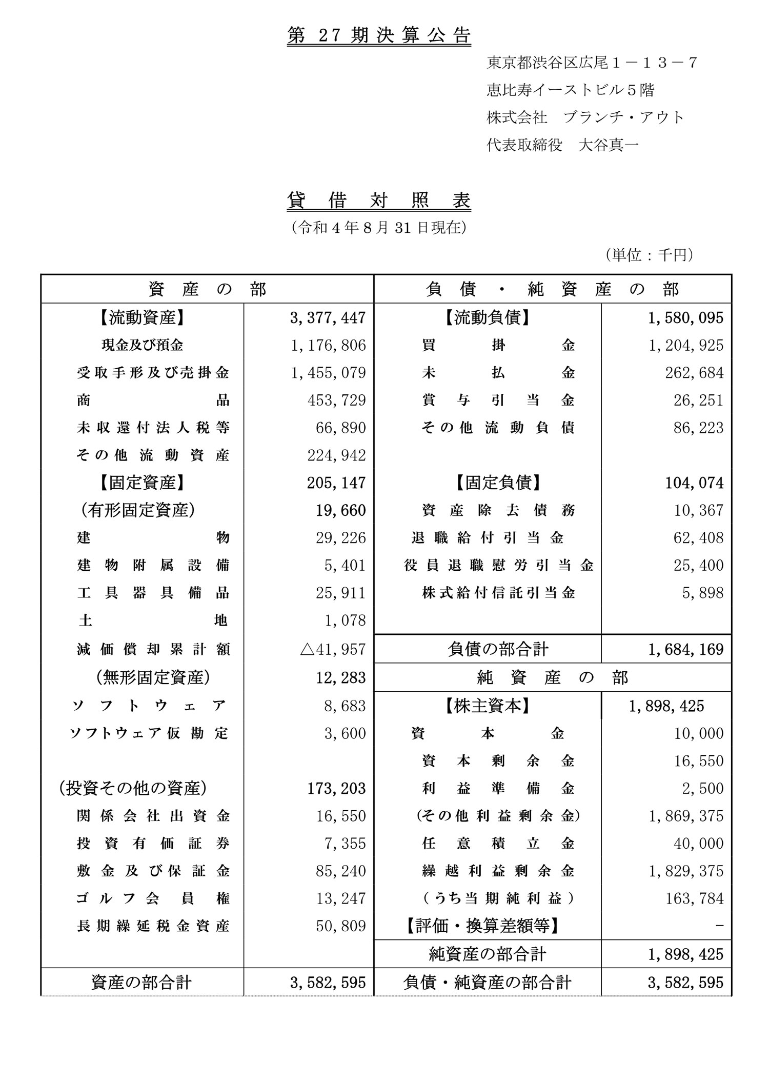 | 法人名 | 株式会社ブランチ・アウト |