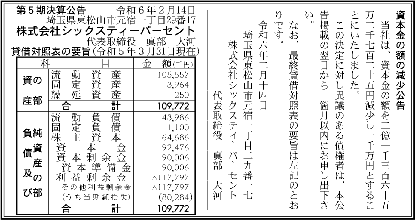 株式会社シックスティーパーセントの法人登記簿(全部事項)を請求