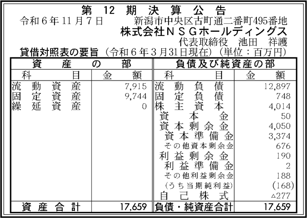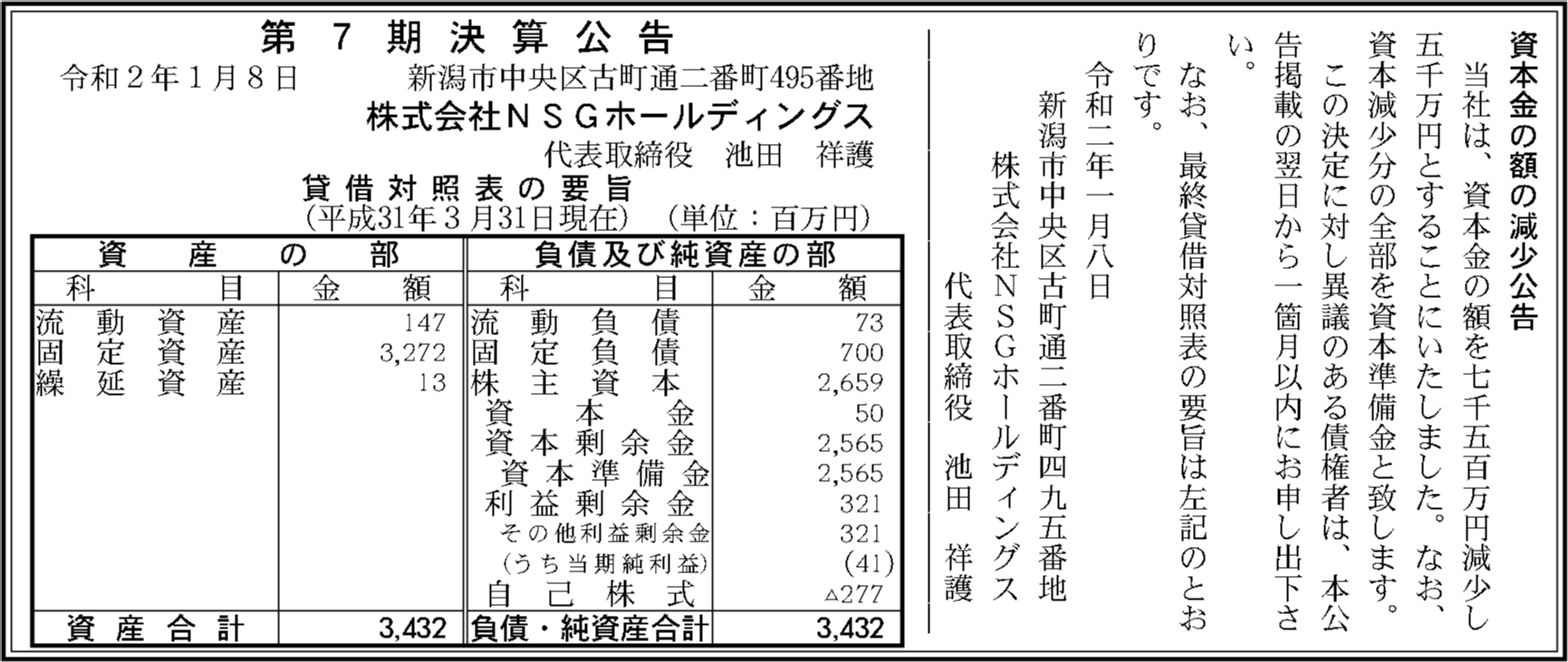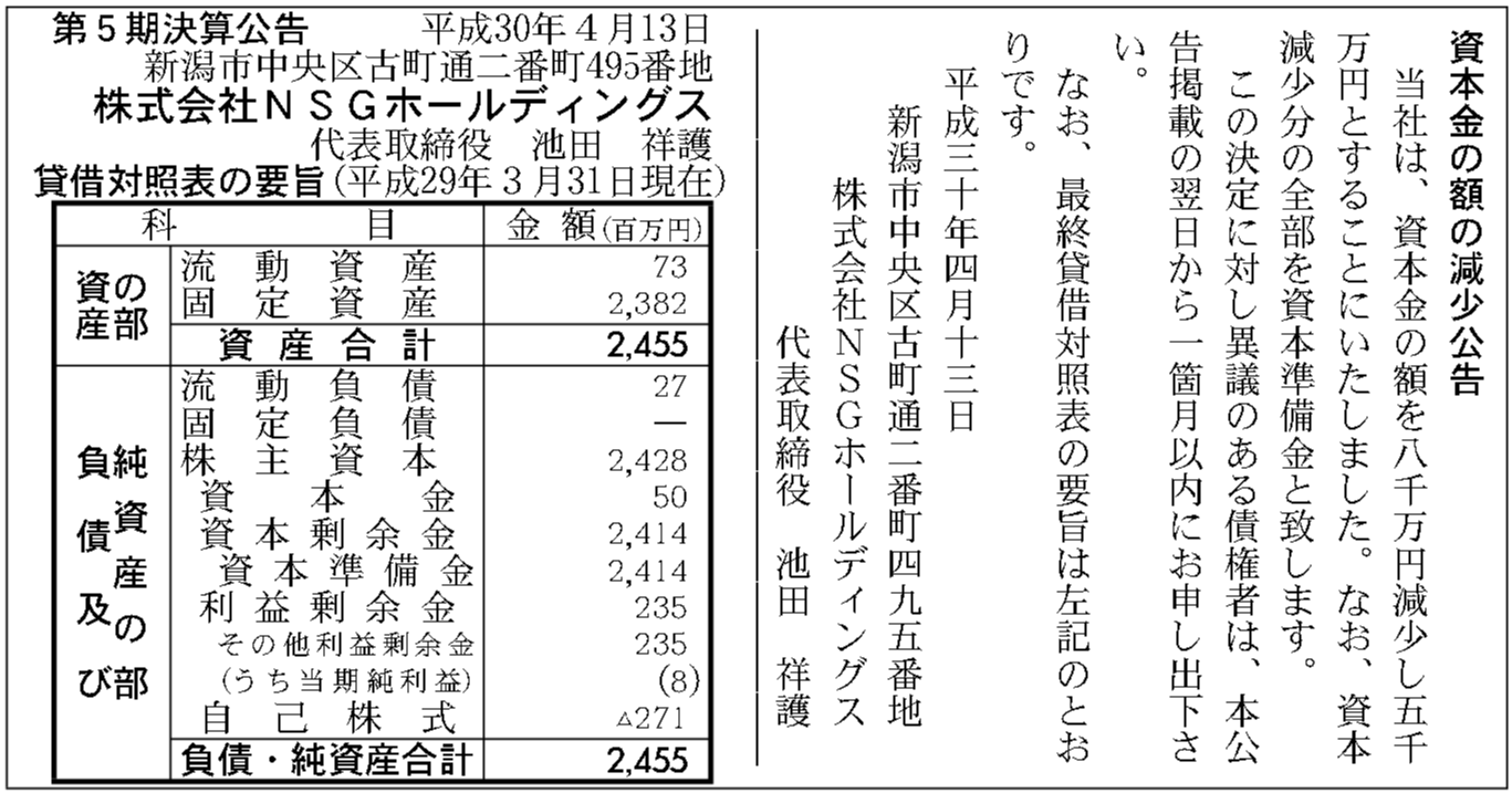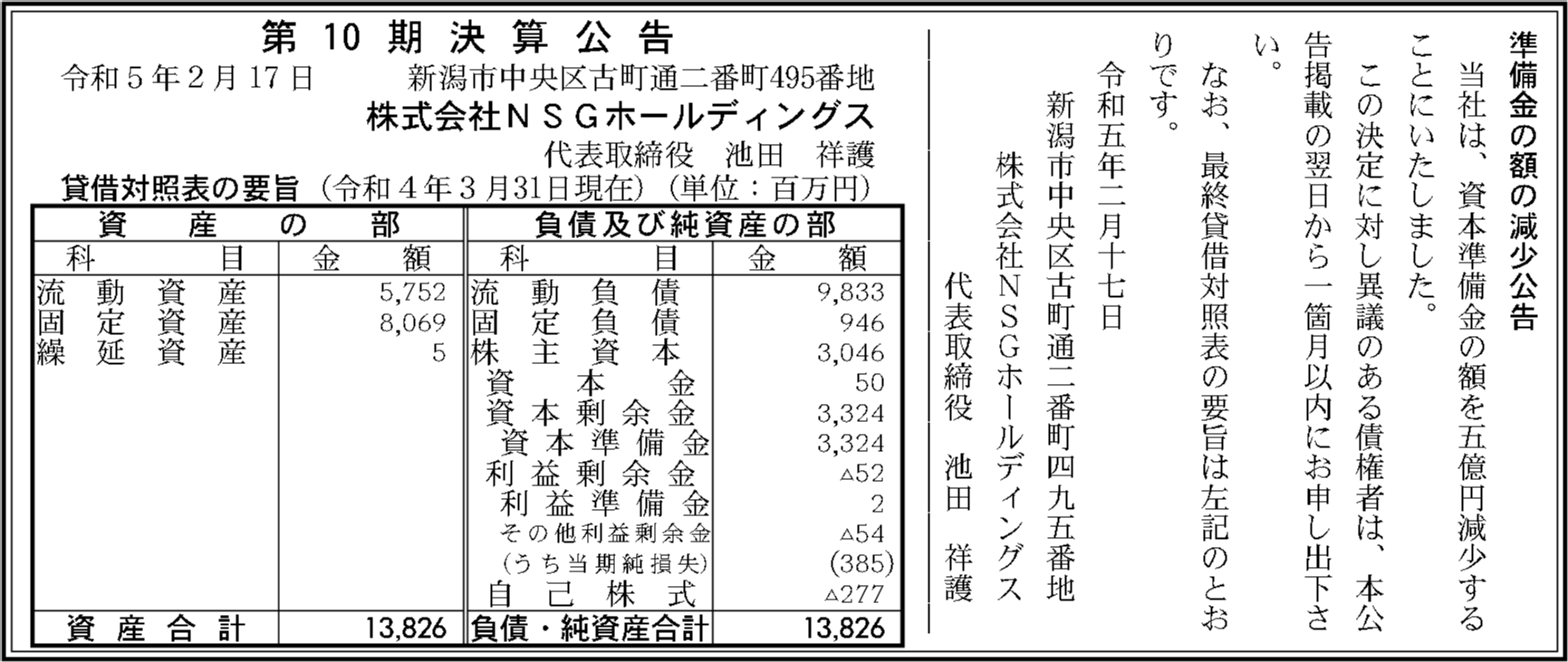 株式会社NSGホールディングス(エヌエスジーホールディングス)は、新潟県新潟市中央区古町通2番町495番地に所在する法人です(法人番号: 4110001028026)。最終登記更新は2015/10/05で、新規設立(法人番号登録)を実施しました。
