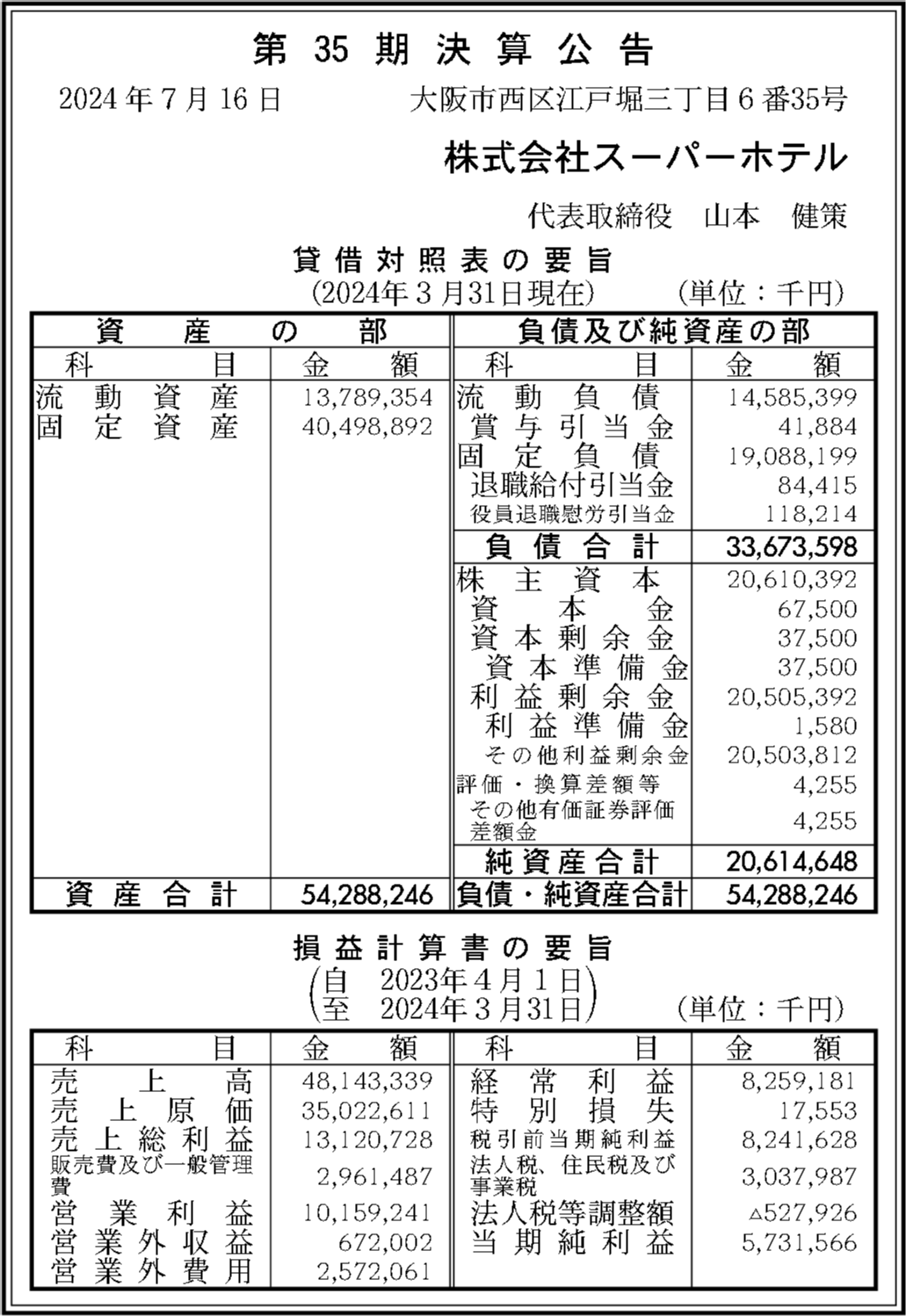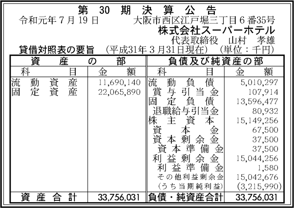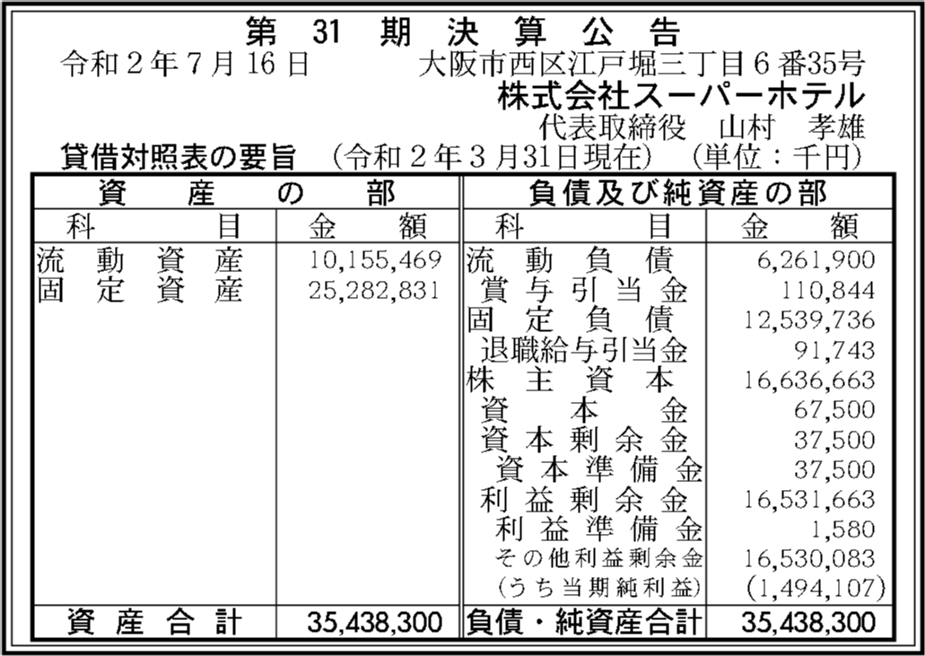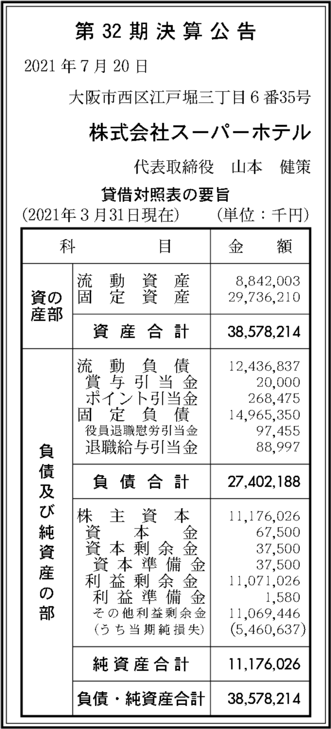 | 法人名 | 株式会社スーパーホテル |