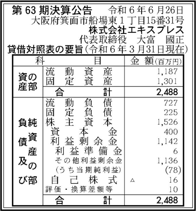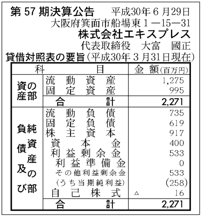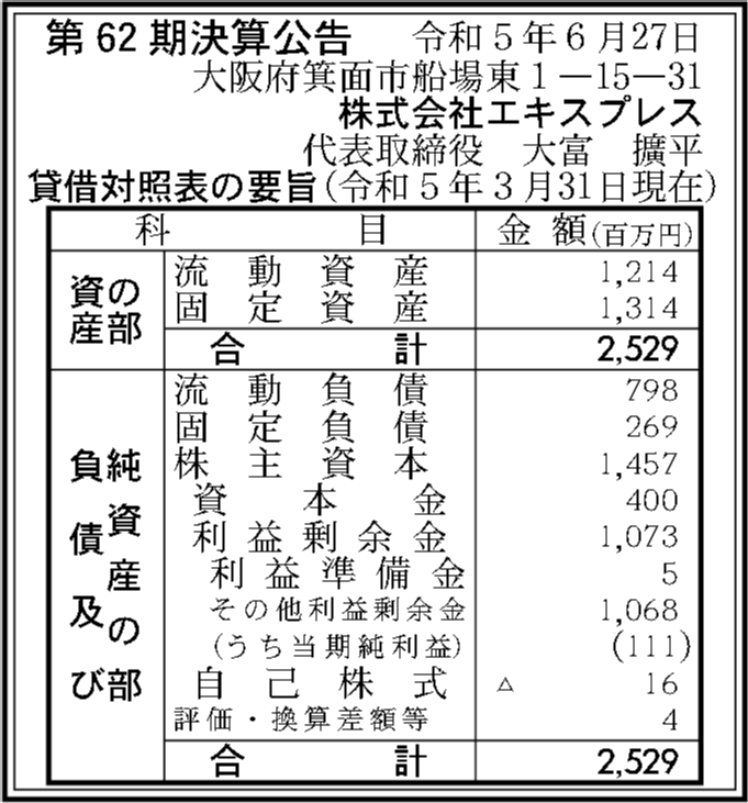 株式会社エキスプレスの過去の決算一覧