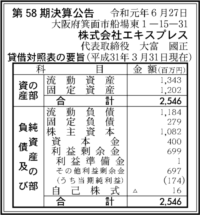 | 法人名 | 株式会社エキスプレス |