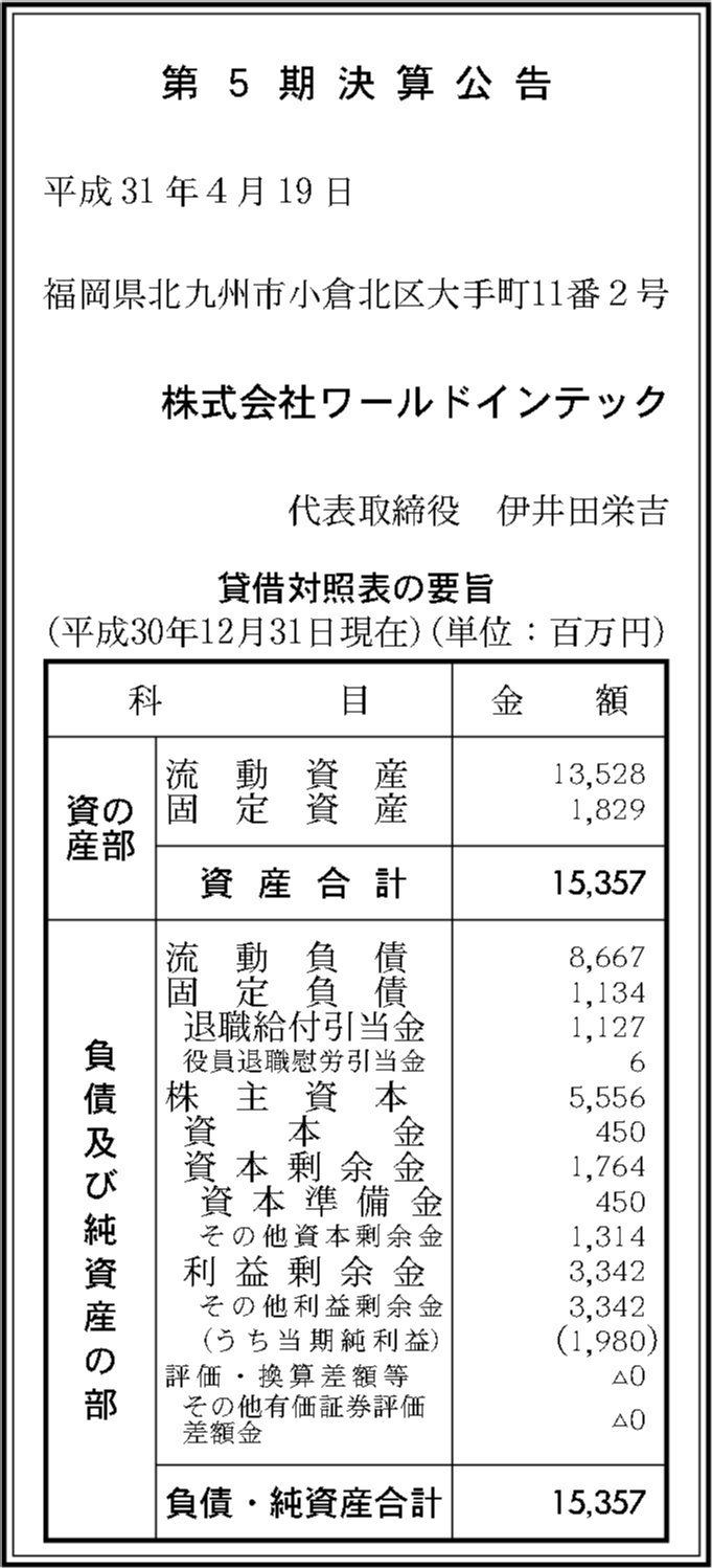 | フリガナ | ワールドインテック |