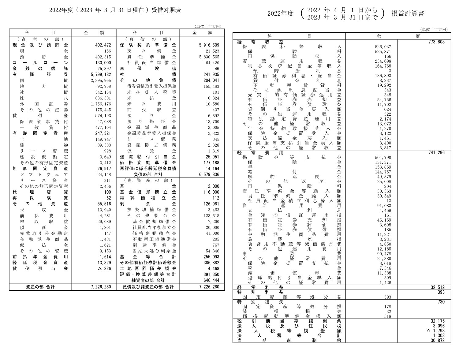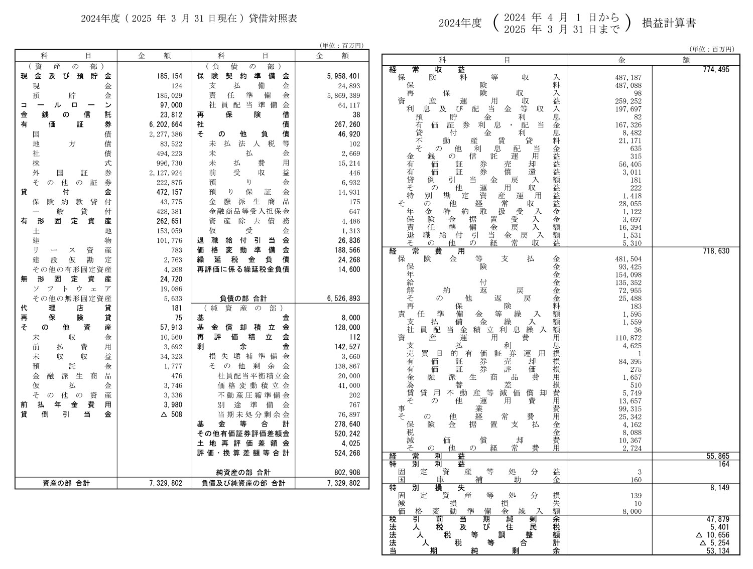 富国生命保険相互会社の過去の決算一覧