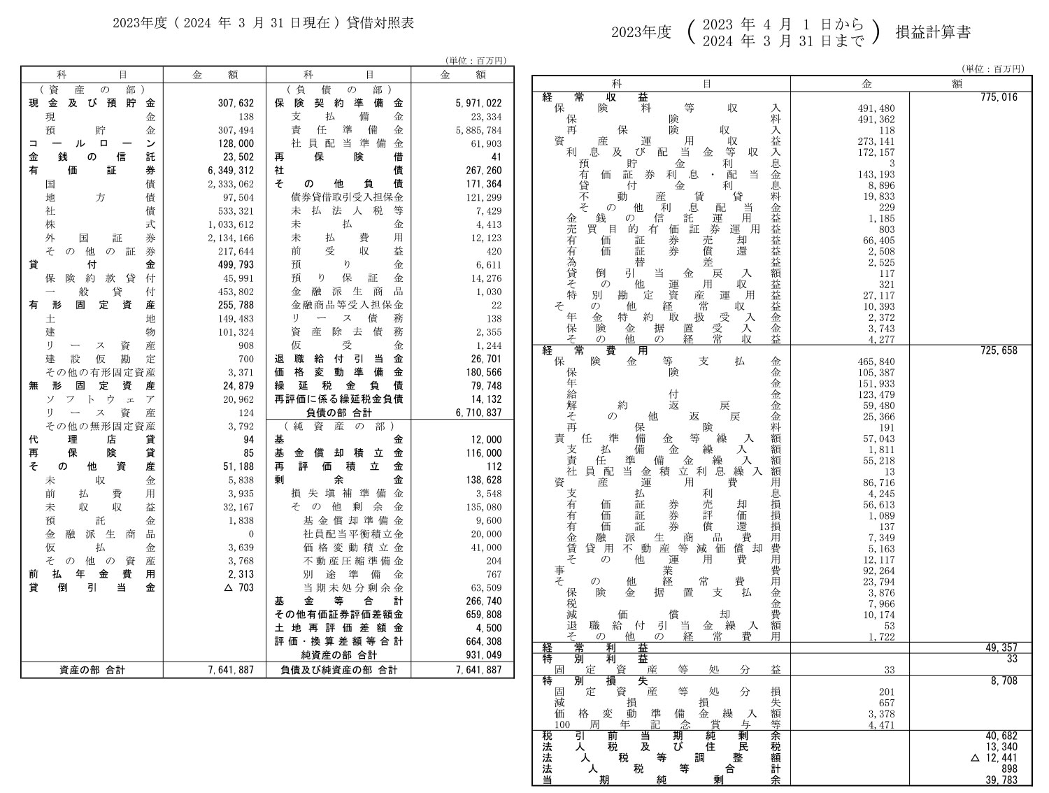 | 2024年03月31日 | 2023年度 | 7750億1600万円 | 397億8300万円 | 1386億2800万円 | 7兆6418億8700万円 |