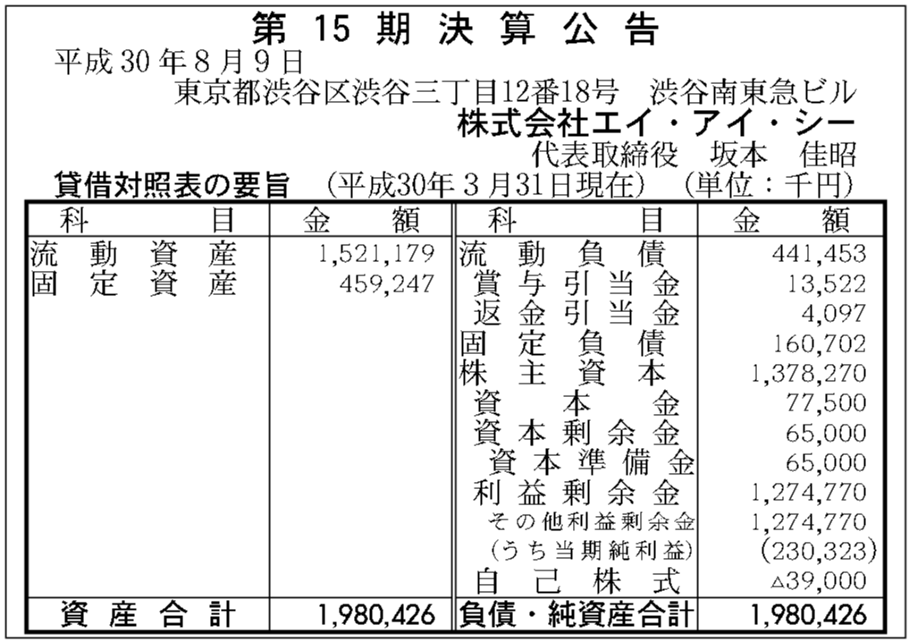 | 2018年03月31日 | 15期 | 2億3,032万3,000円 | 12億7,477万円 | 19億8,042万6,000円 |