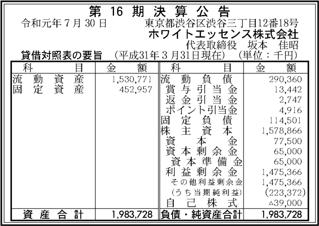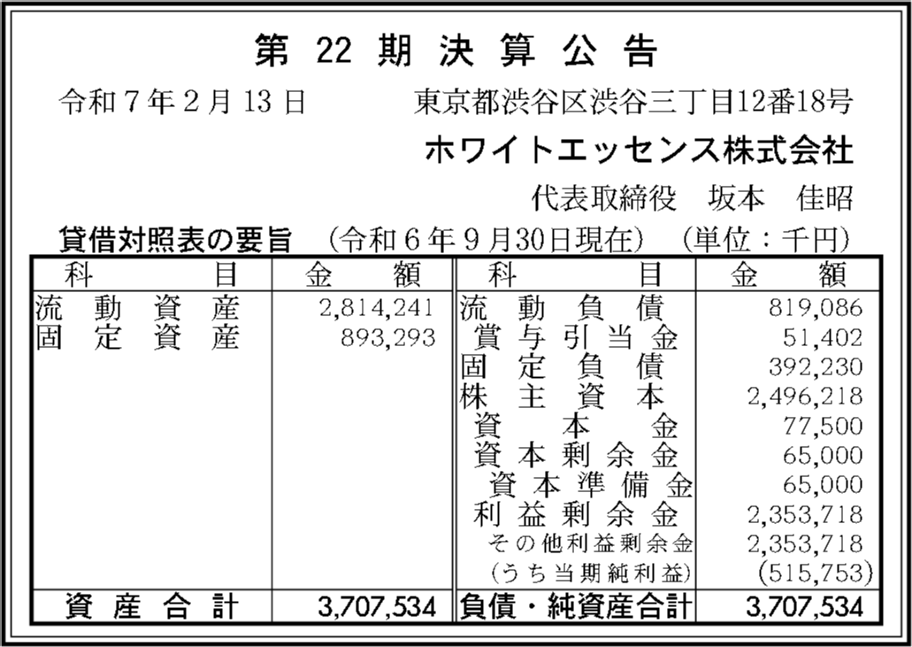 ホワイトエッセンス株式会社(旧名称:株式会社エイ・アイ・シー)の法人登記簿(全部事項)を請求