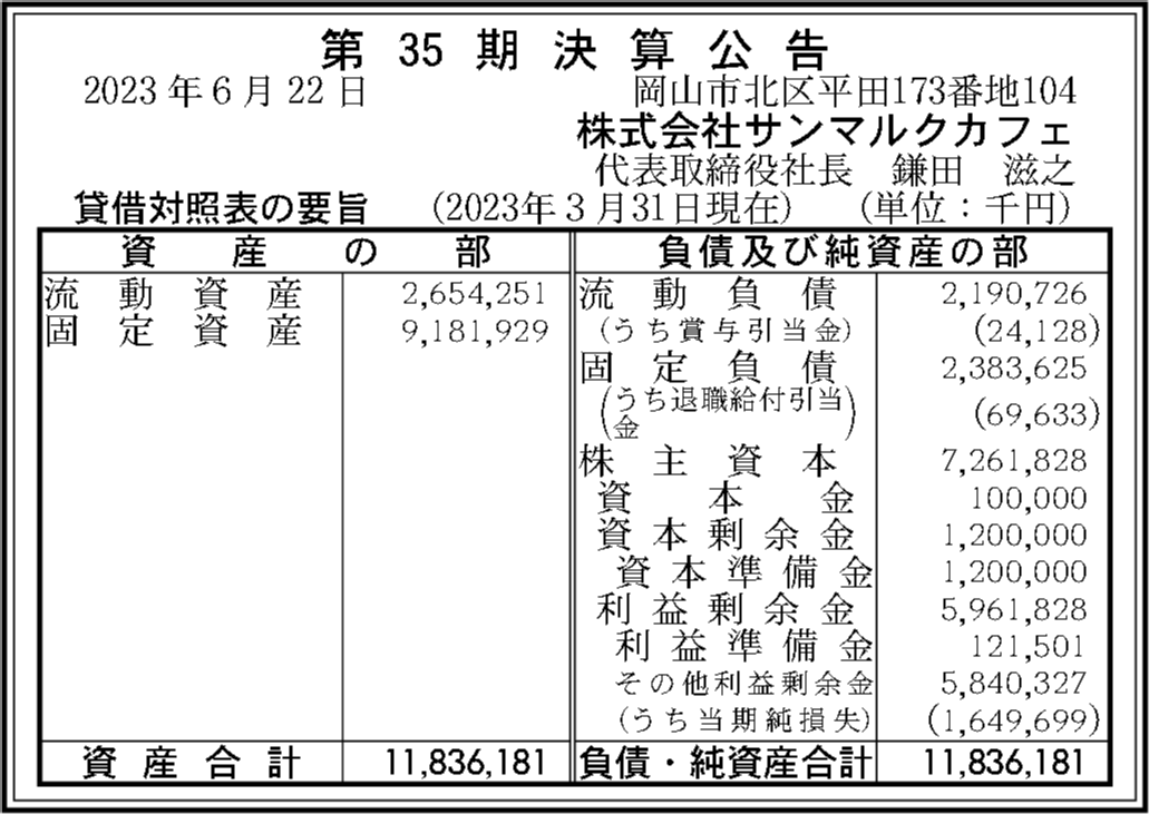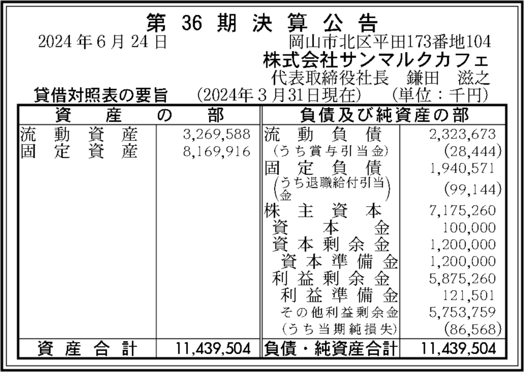 株式会社サンマルクカフェの過去の決算一覧