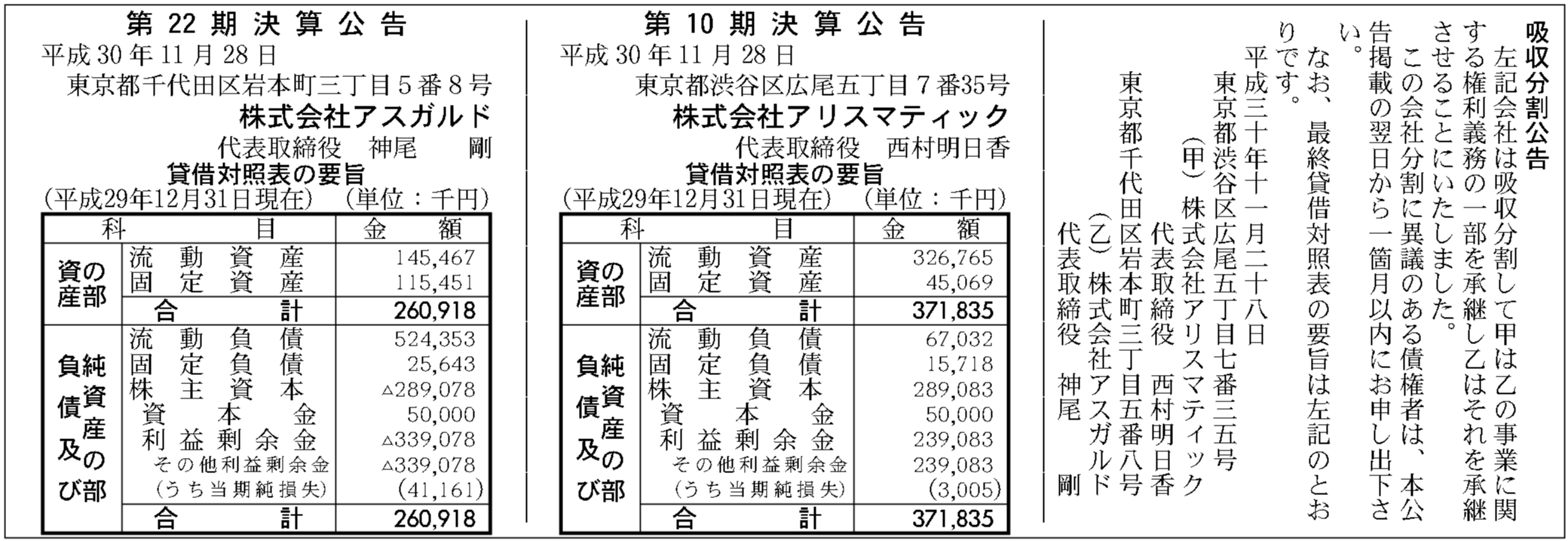 2019年1月4日、株主総会の決議により株式会社アスガルドは正式に解散。