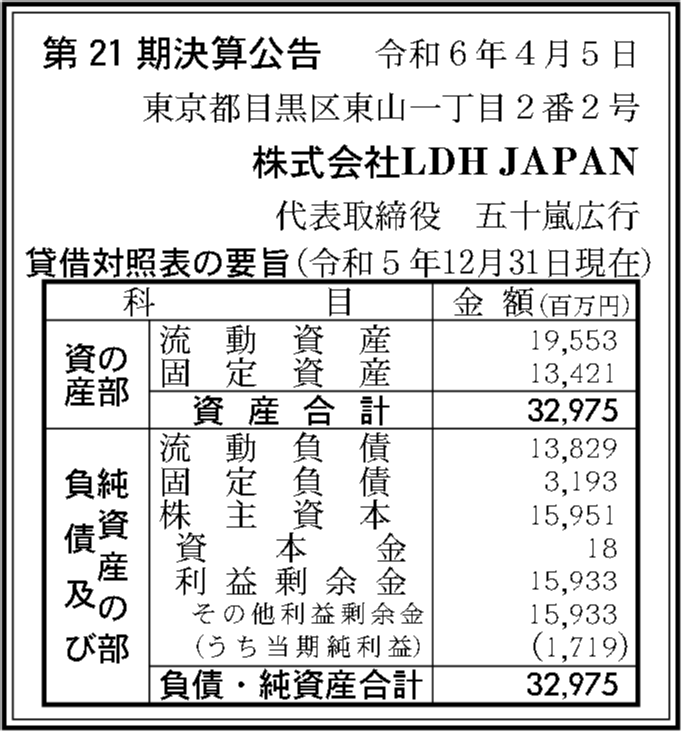株式会社LDH JAPAN(エルディーエイチジャパン)は、2003年09月18日設立の五十嵐 広行が社長/代表を務める東京都目黒区東山1丁目2番2号に所在する法人です(法人番号: 6013201010538)。最終登記更新は2017/01/11で、名称・商号変更を実施しました。