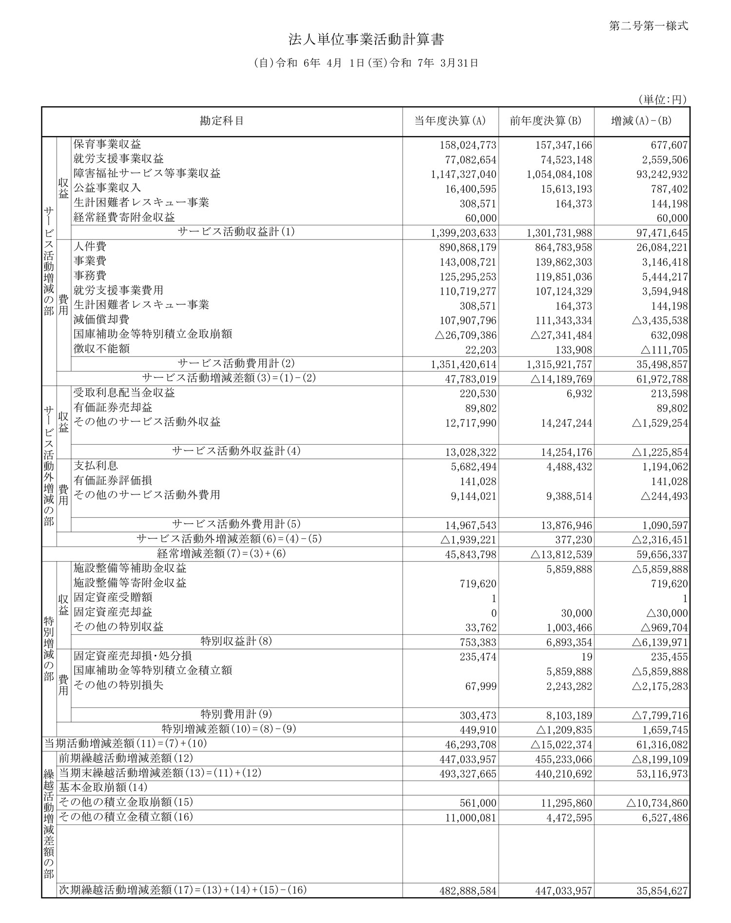 2025年3月期の決算(売上[サービス活動収益計]): 13億9920万3633円、当期純利益[当期活動増減差額]: 4629万3708円)を掲載しています。