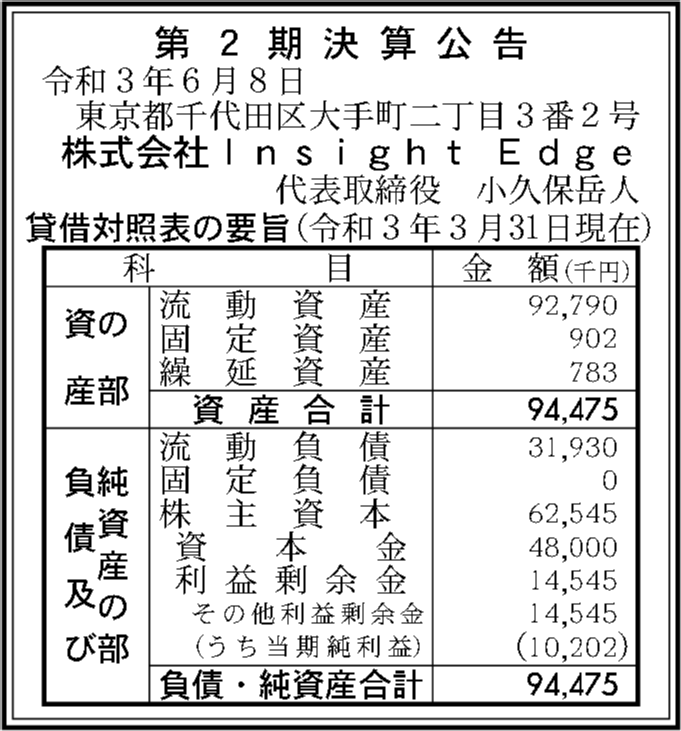 | 2021年03月31日 | 2期 | 1,020万2,000円 | 1,454万5,000円 | 9,447万5,000円 |