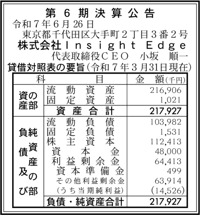 現在、株式会社Insight Edgeの最新ニュースはありません。