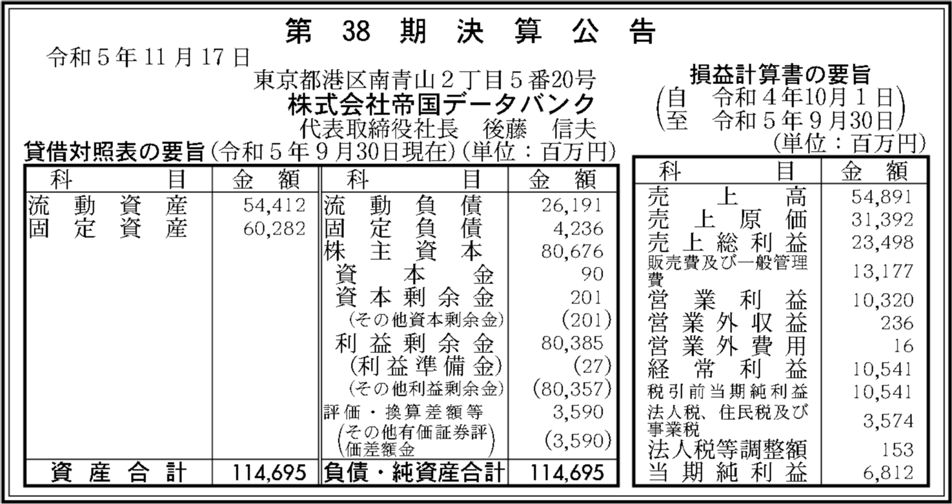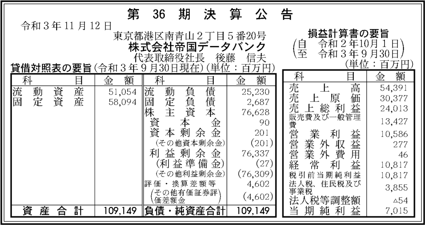 株式会社帝国データバンクの過去の決算一覧