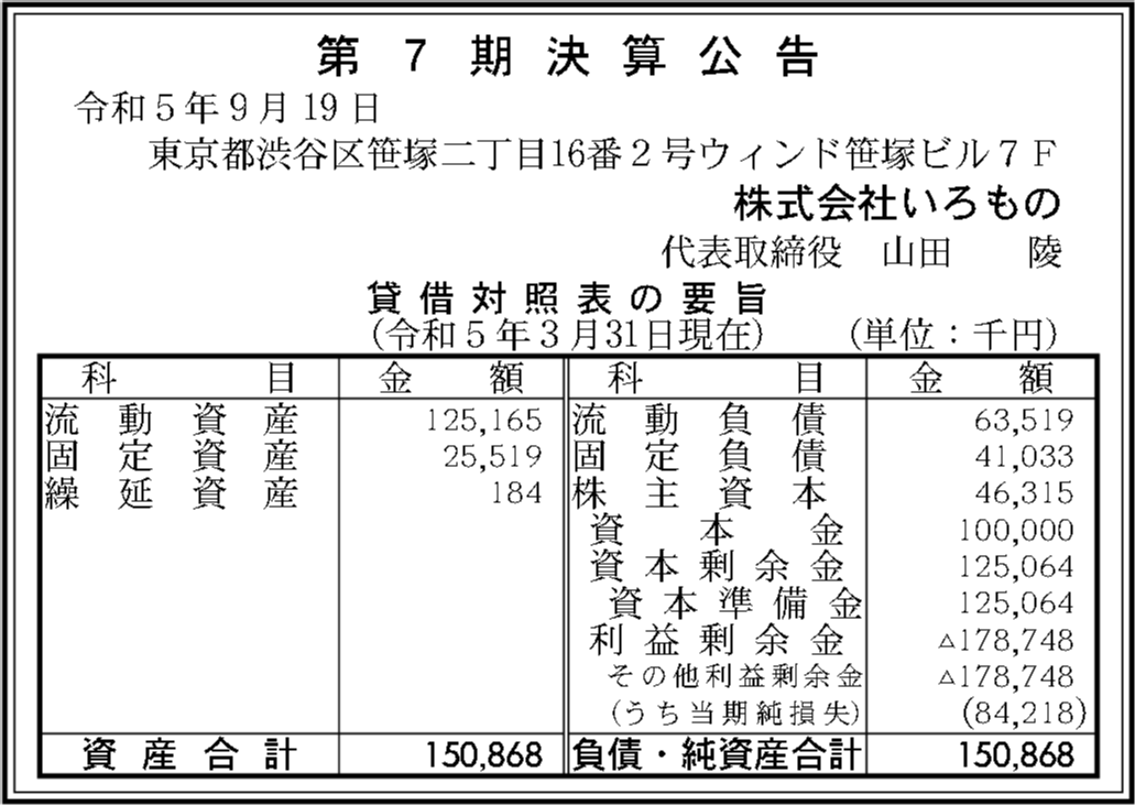 | 法人名 | 株式会社いろもの |