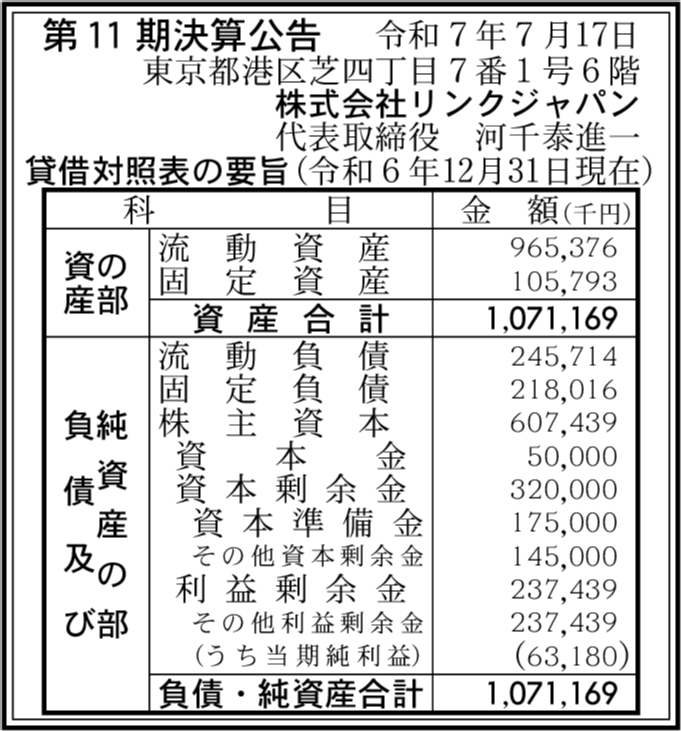 | フリガナ | リンクジャパン |