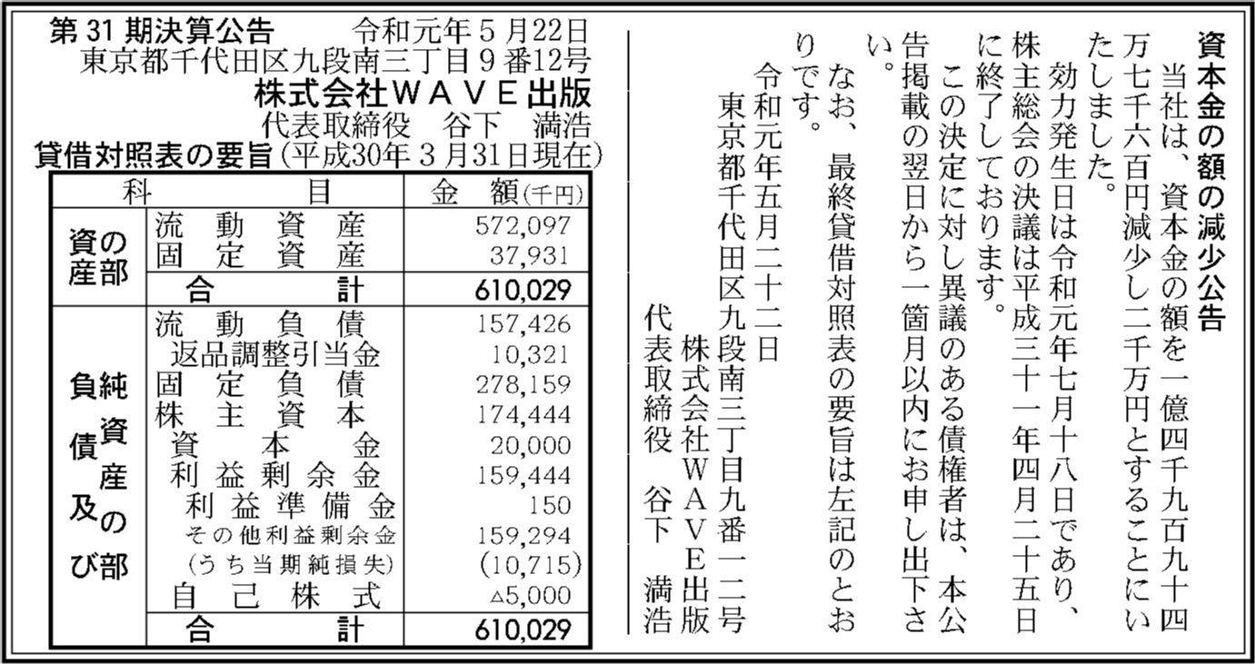 | 法人名 | 株式会社WAVE出版 |