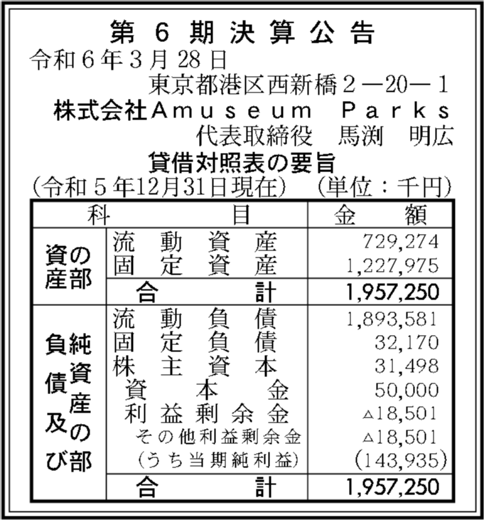 株式会社Amuseum Parks(アミュージアムパークス)は、2018年設立の東京都港区西新橋2丁目20番1号に所在する法人です(法人番号: 9010401139997)。最終登記更新は2022/02/08で、所在地変更を実施しました。