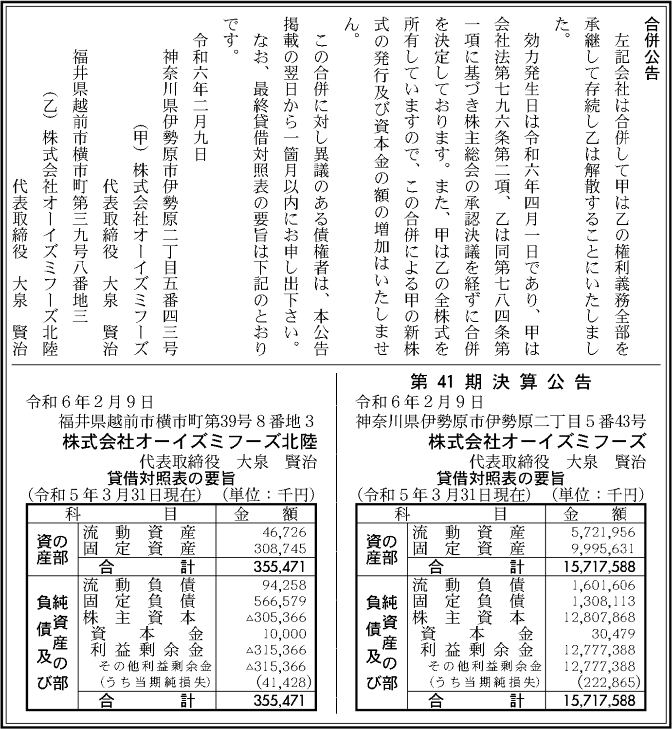 | フリガナ | オーイズミフーズ |
