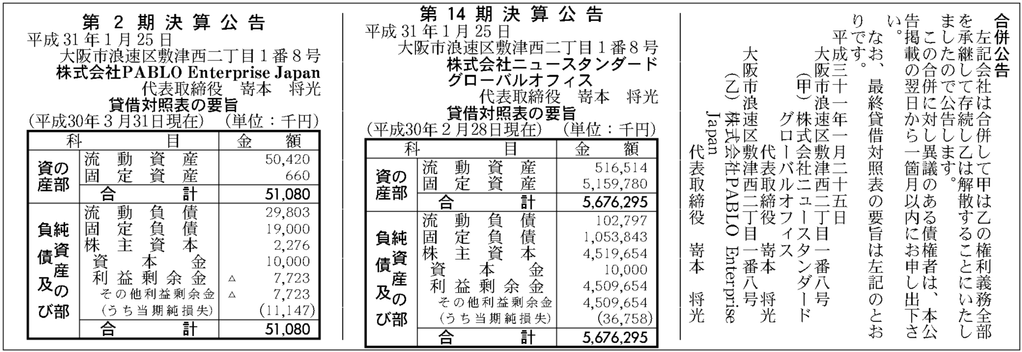 - 代表者:嵜本将光