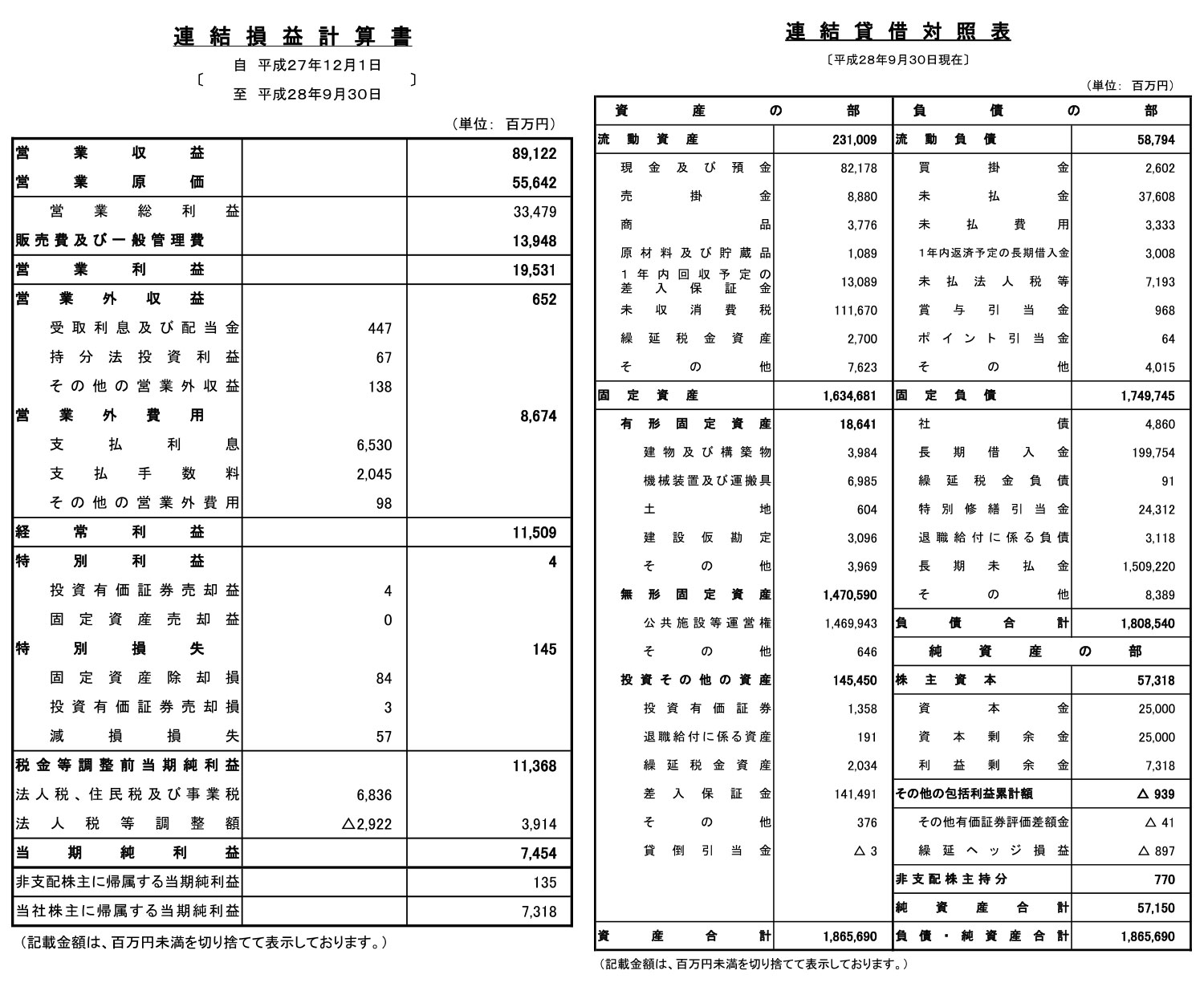 | 2016年09月30日 | 1期 | 891億2200万円 | 74億5400万円 | 73億1800万円 | 1兆8656億9000万円 |
