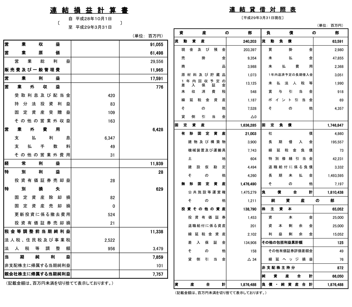| 2017年03月31日 | 2期 | 910億5500万円 | 78億5900万円 | 150億5200万円 | 1兆8764億8800万円 |